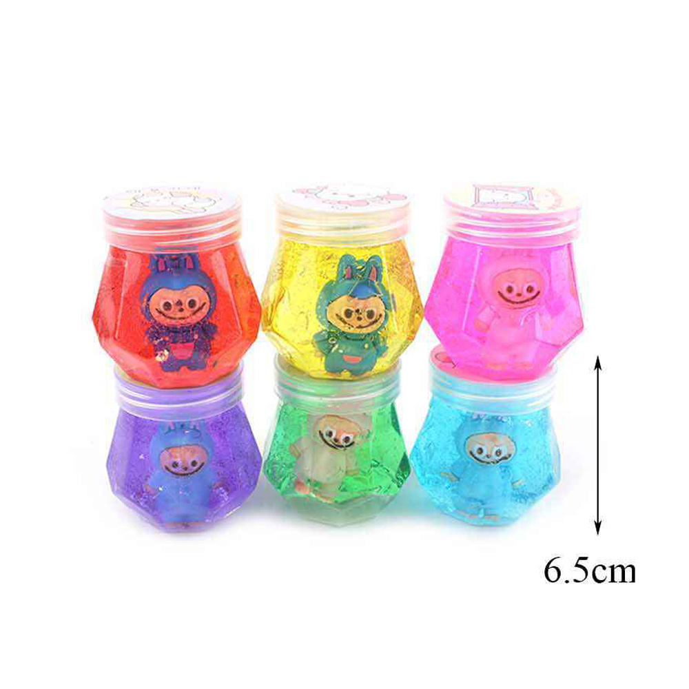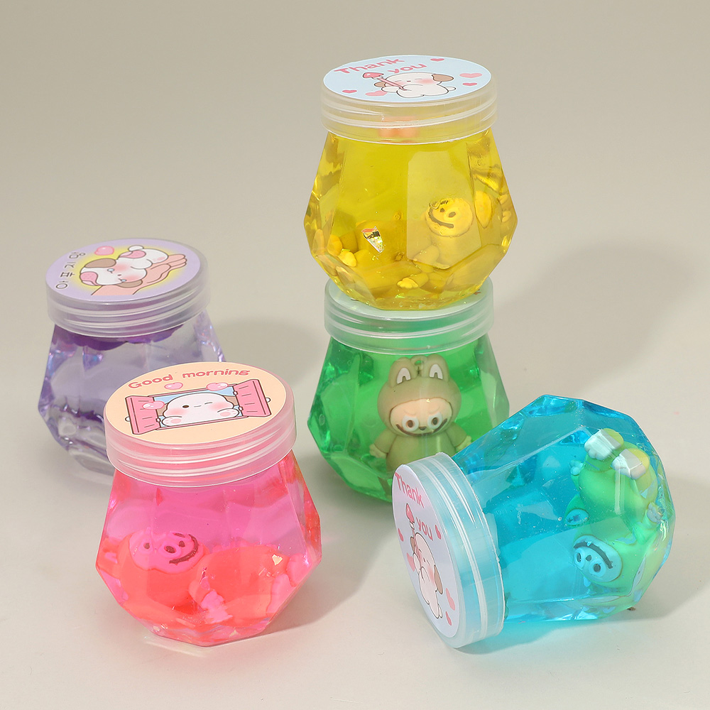 Details • Size : 2.6" X 2.6" • The Cartoon Character Crystal Mud Set includes fun, colorful jars filled with soft, stretchable slime and adorable character charms inside. Perfect for kids and collectors, these playful jars make a great sensory toy or gift, combining creativity, relaxation, and endless entertainment.