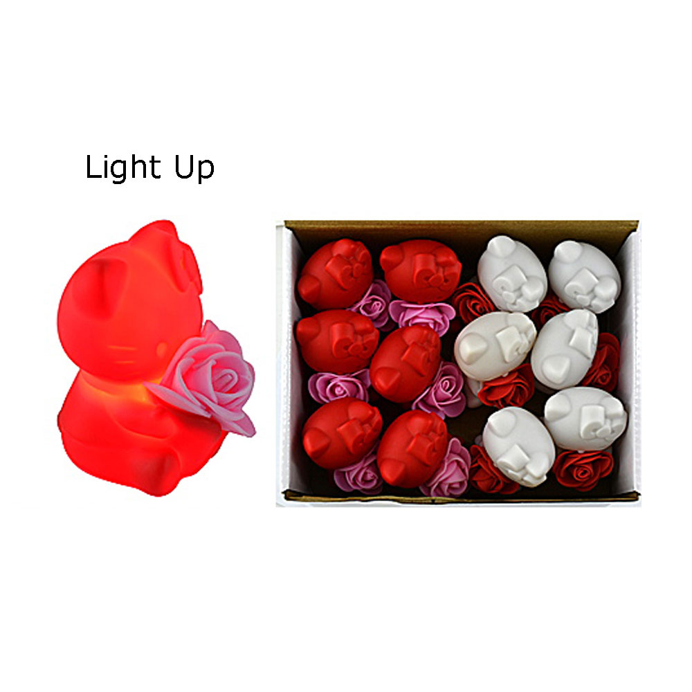 Details • Size : 1.75" X 2.5" • Charming kitty light-up figurines holding soft foam roses, perfect for kids’ Valentine gifts, party favors, and classroom exchanges. Each set includes 12 assorted pieces with glowing LED design, adding a fun and adorable touch to celebrations and gift bags.