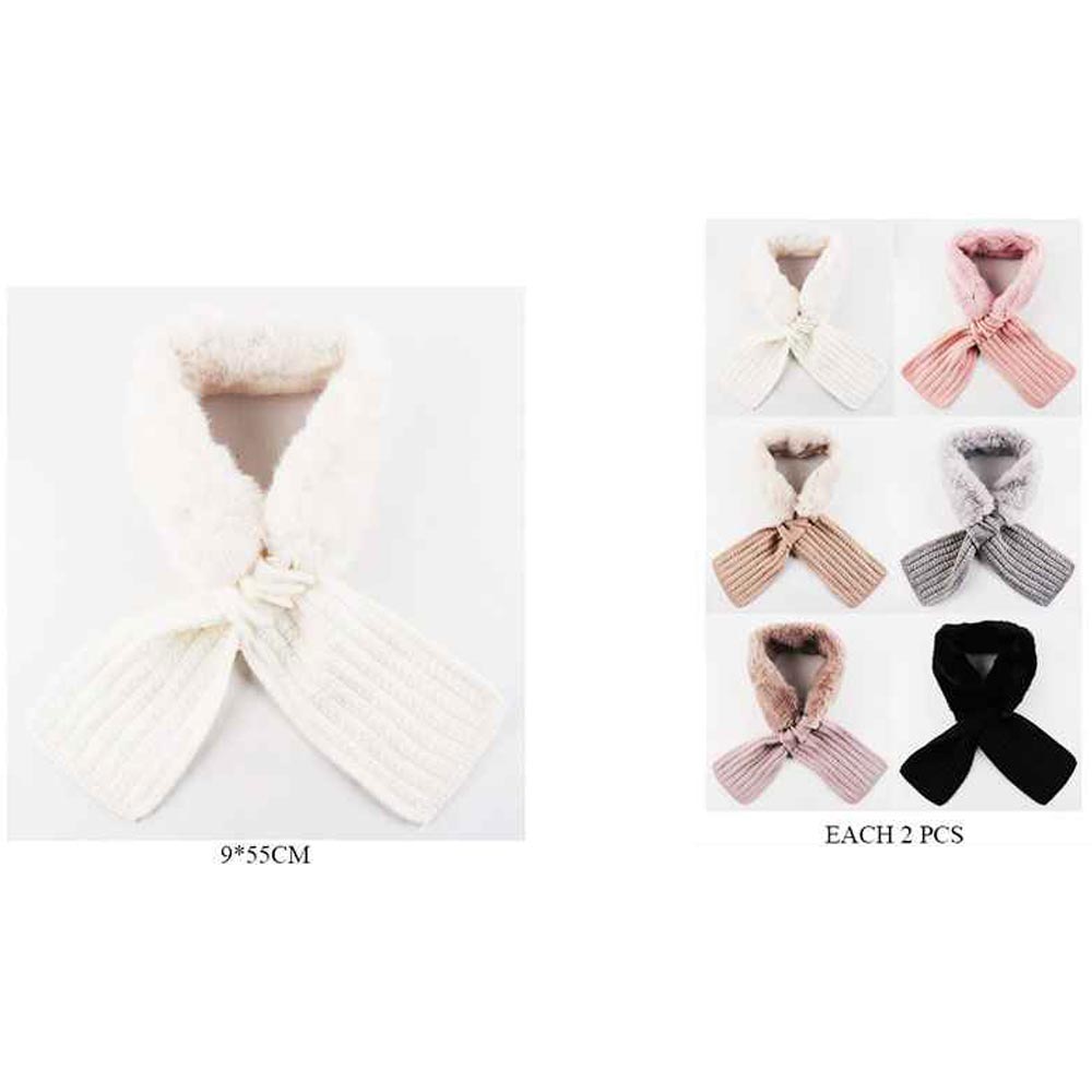 Details • Size : 3.5" X 21" • Material : 100% Polyester • Stay warm and elegant with this faux fur collar scarf featuring ribbed knit bow ends for a cozy and chic finish. Perfect for layering over casual or dressy outfits, it combines comfort and style, available in assorted colors to complement your winter wardrobe with versatile charm.