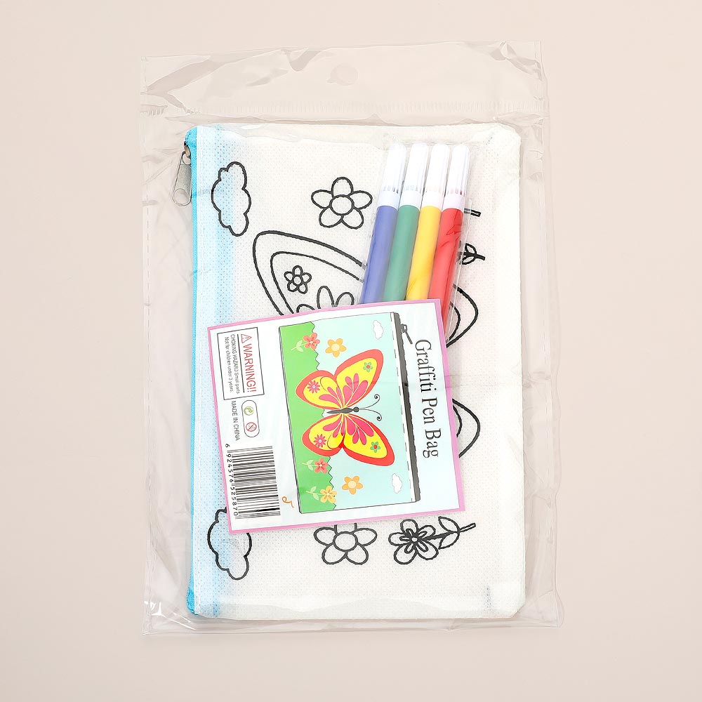 Details • Pouch Size : 4.7" X 8" • Pen Size : 3.5" L • Comes with 4 Colored Pens • Creative kids graffiti pen bag craft set featuring a printable zip pouch and included markers for easy decorating fun. Perfect for party favors, classroom projects, rainy-day activities, travel entertainment, and hands-on play that inspires imagination and creativity.