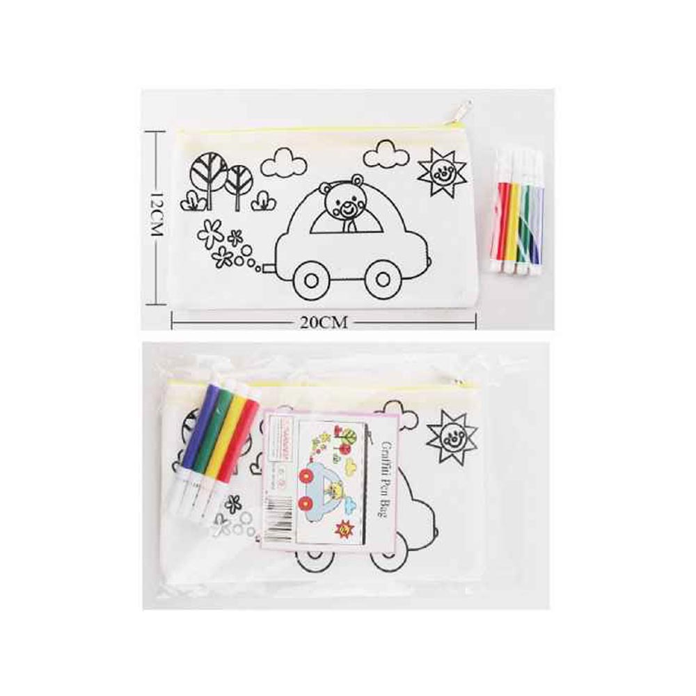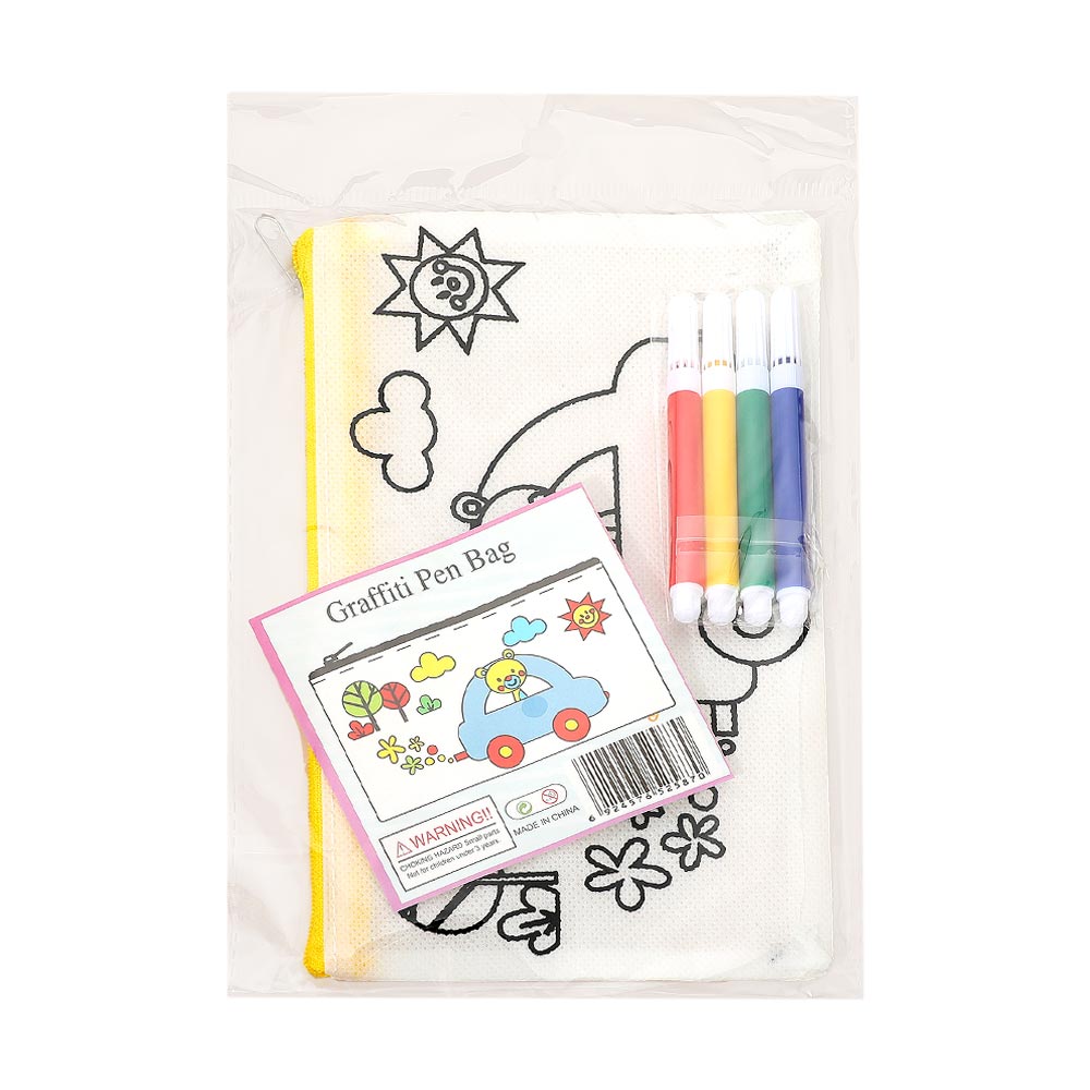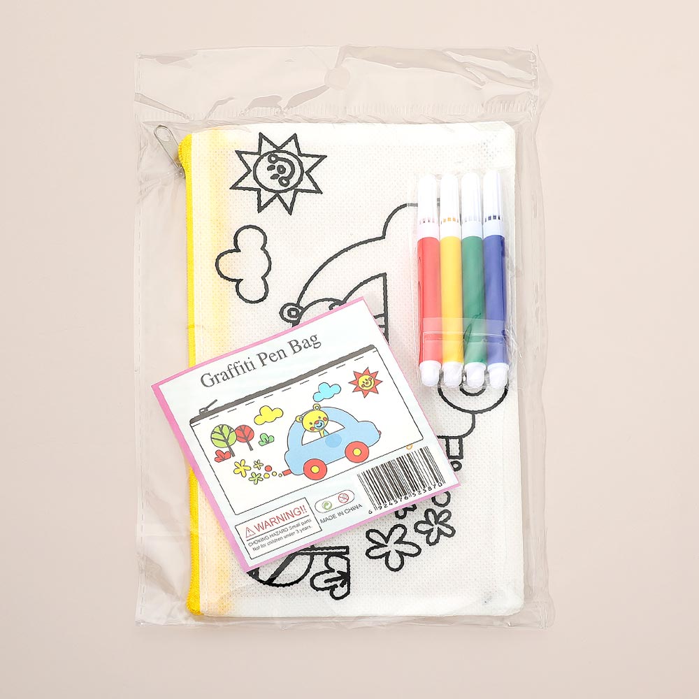 Details • Pouch Size : 4.7" X 8" • Pen Size : 3.5" L • Comes with 4 Colored Pens • Creative kids graffiti pen bag craft set featuring a printable zip pouch and an included marker set for easy decorating fun. Ideal for party favors, classroom activities, travel entertainment, or thoughtful small gifts that spark imagination and hands-on creativity.