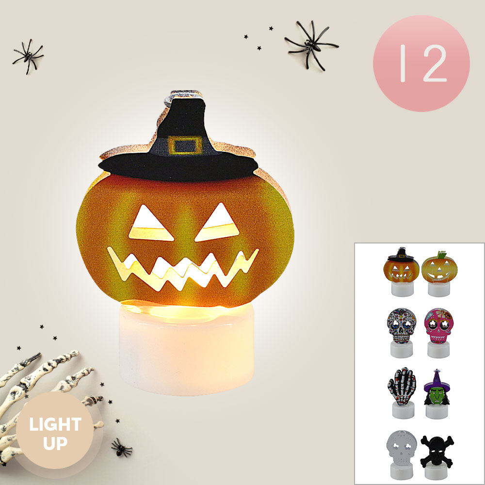 • Set of 12 light-up Halloween rings with fun assorted designs like pumpkins, skulls, and spooky characters. Great for parties, trick-or-treat bags, and festive giveaways. Bright LED adds a fun glow.
