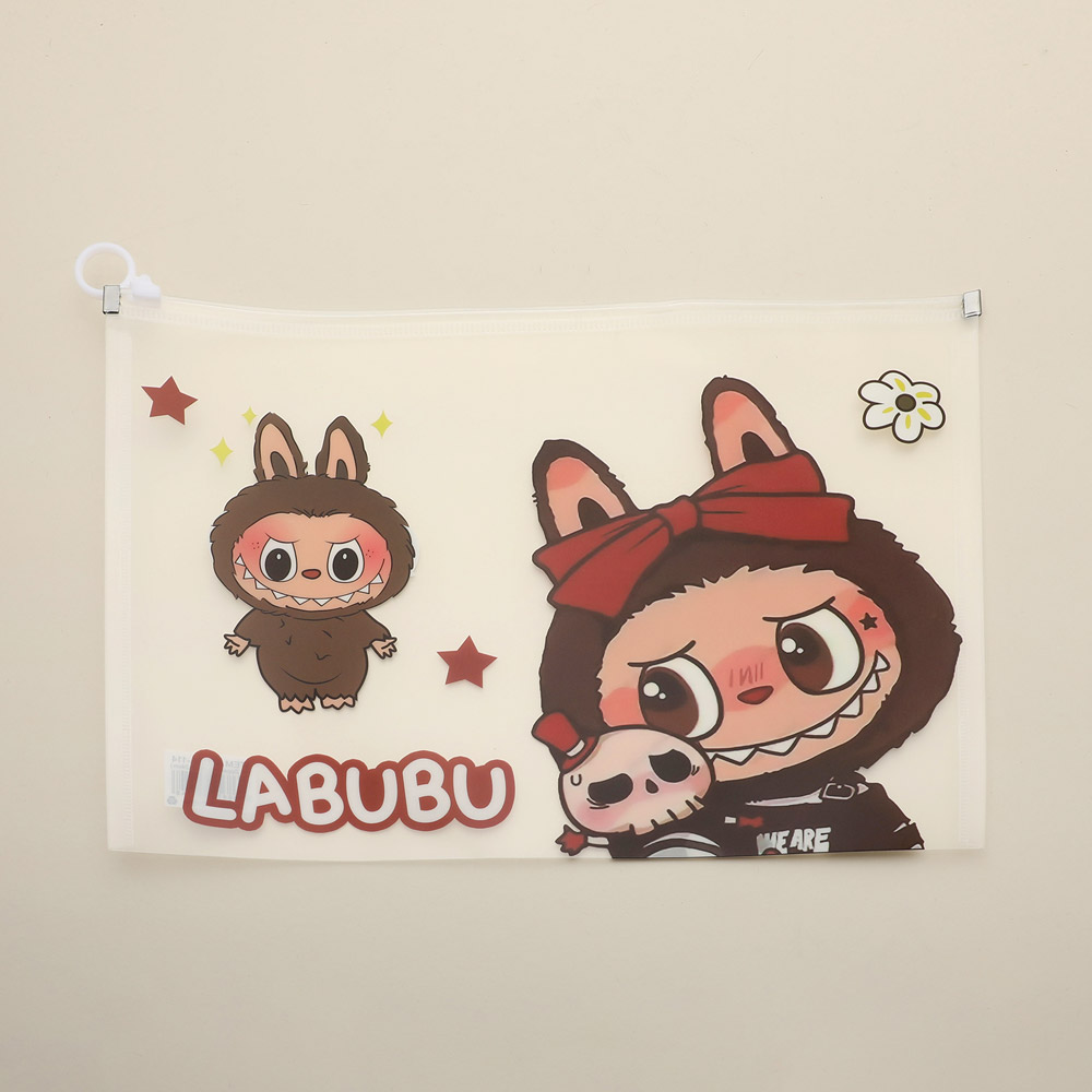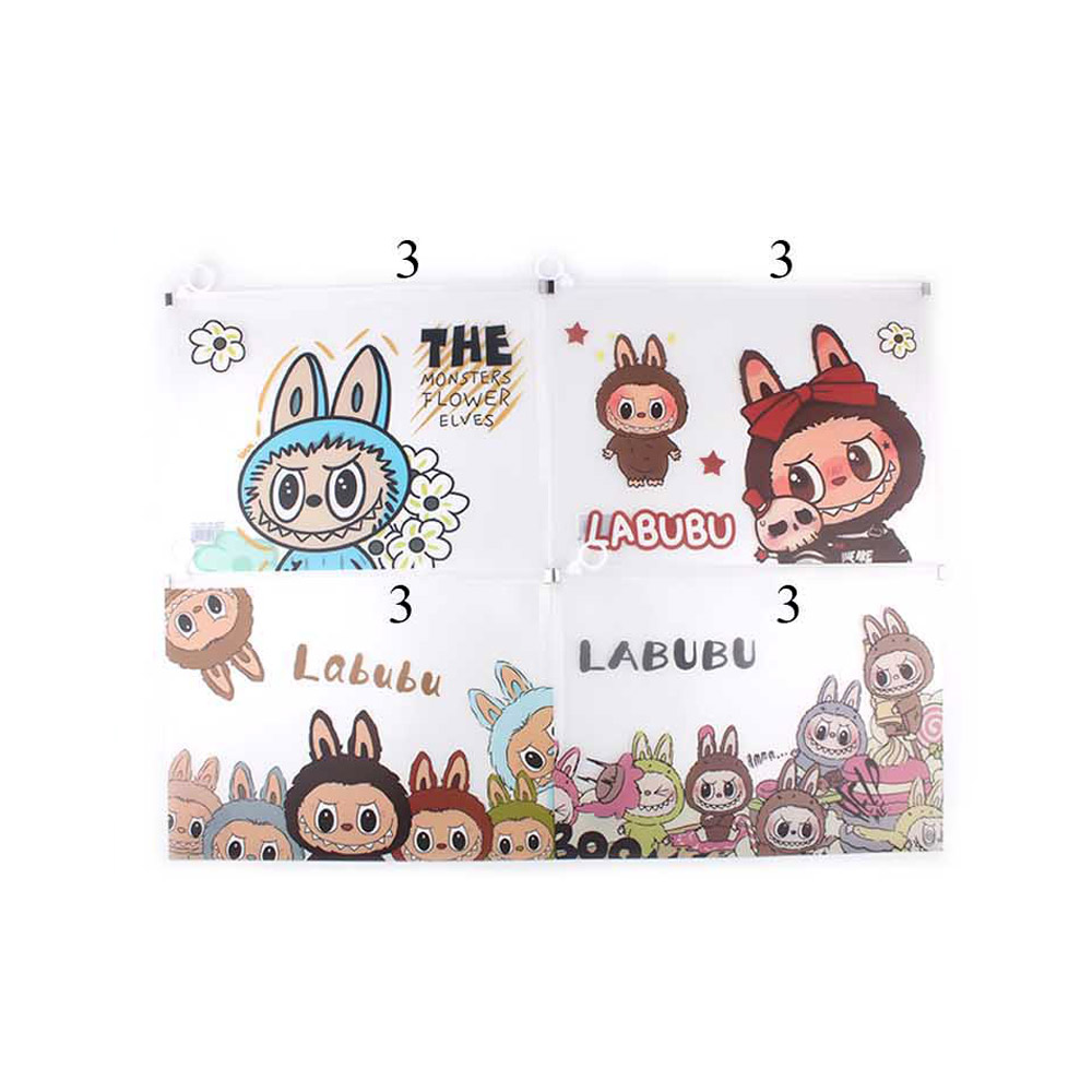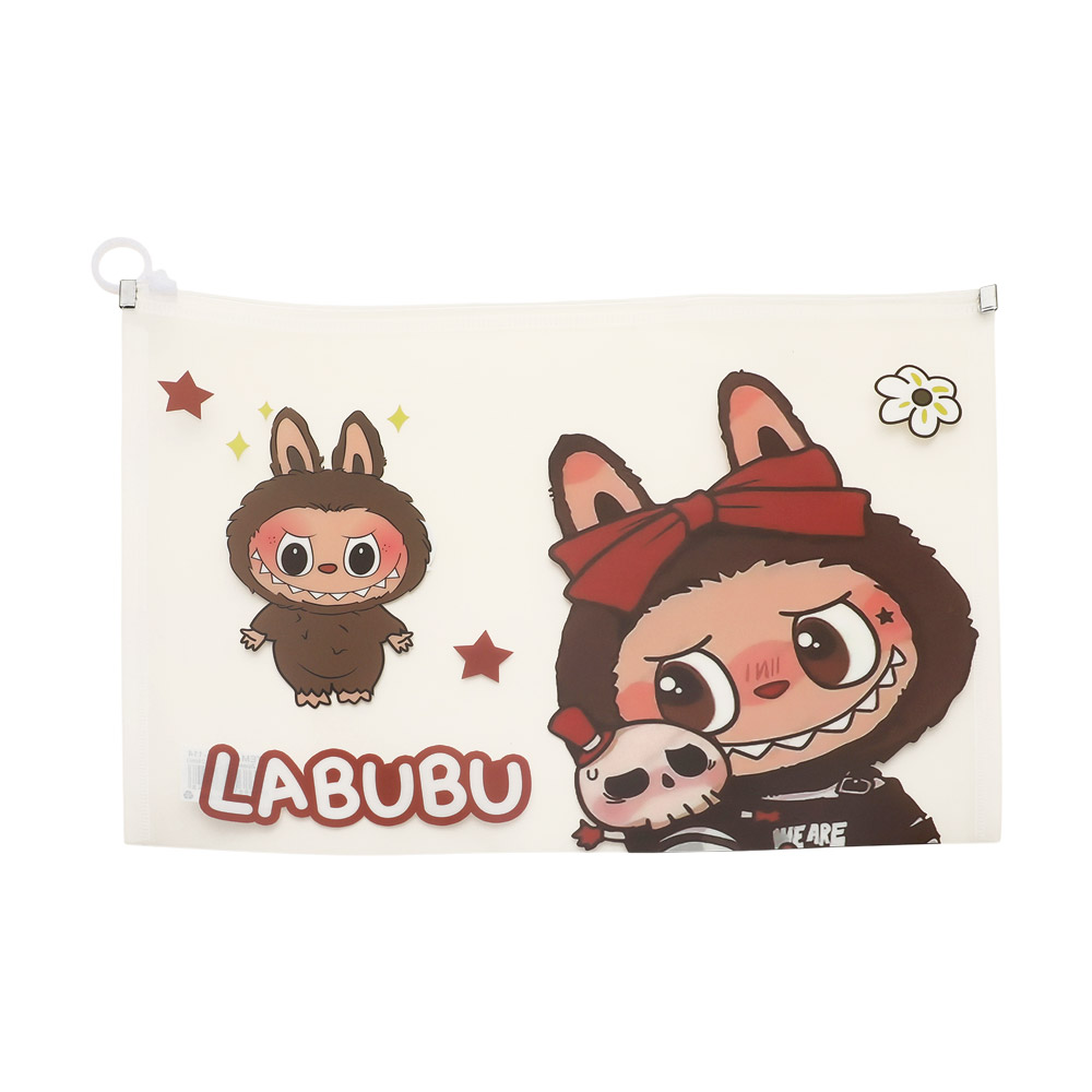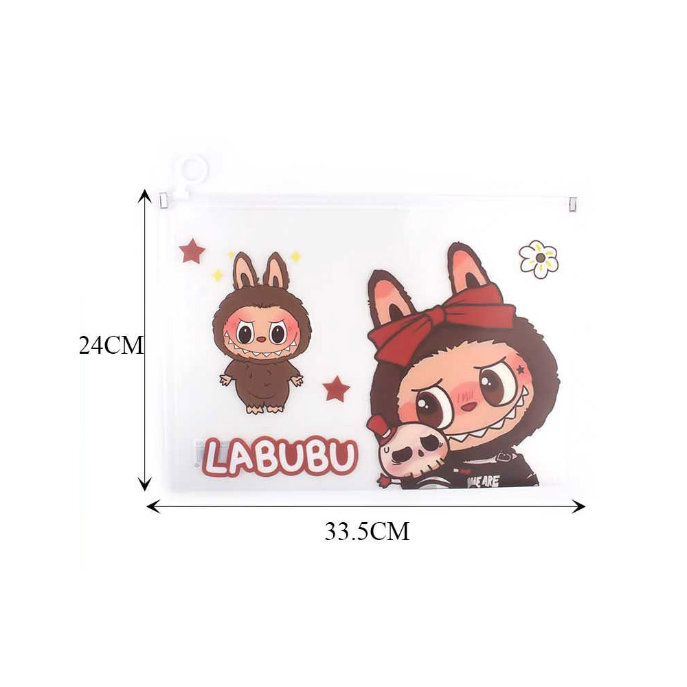 Details • Size : 13" X 9.5" • Zip Closure • Adorable monster bunny character-themed zip pouches perfect for storing stationery, cosmetics, or travel essentials. Lightweight, durable, and easy to carry with a secure zipper closure. Fun and functional accessory for kids, students, and collectors. Comes in assorted cute designs.