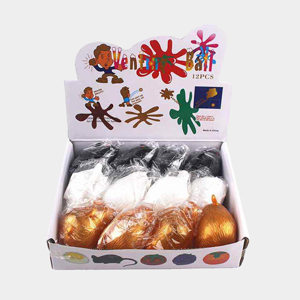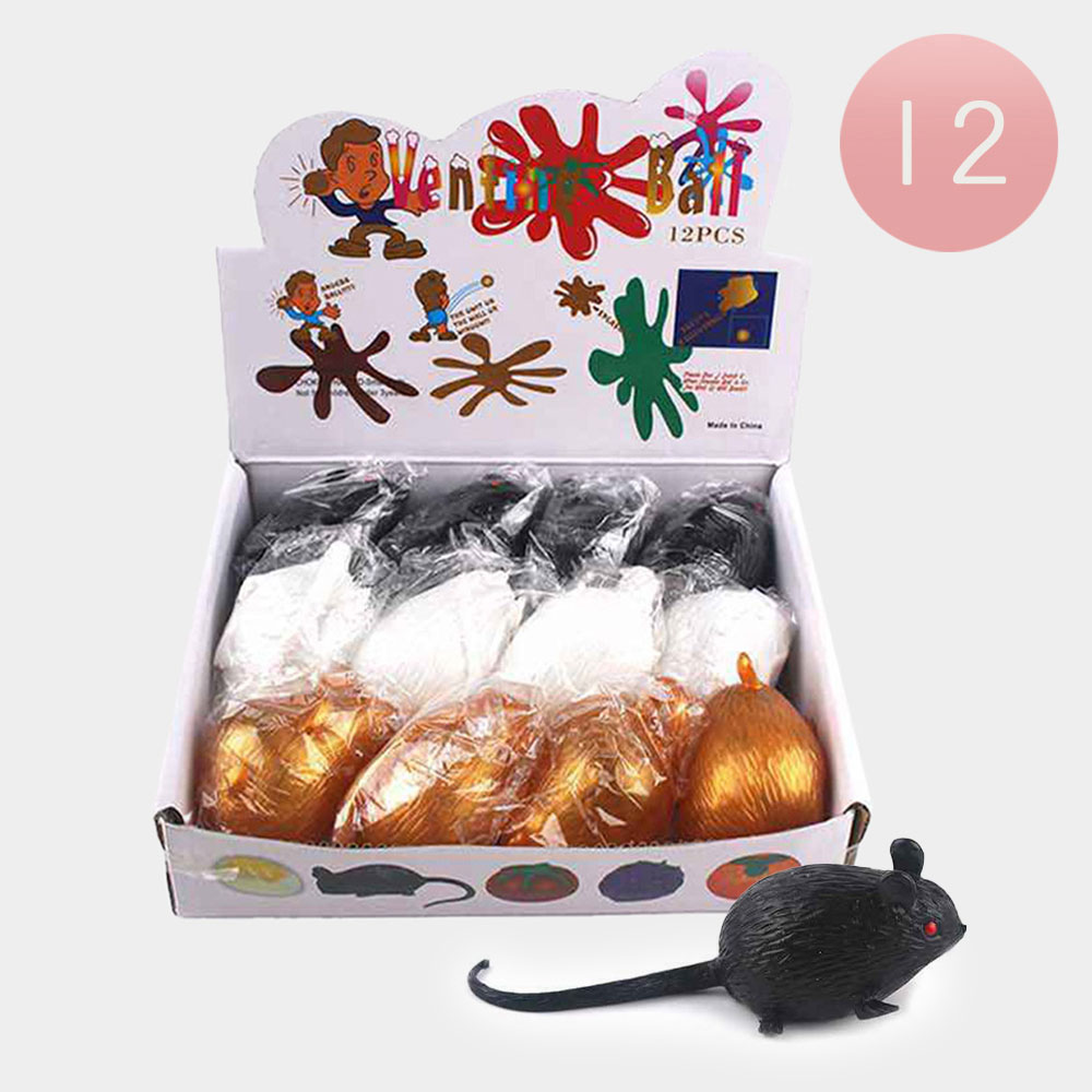 Details • Size : 6.5" X 1.6" • Entertain and surprise with this 12-pack of mouse-shaped splat balls. These stretchy, squishy toys flatten on impact and bounce back into shape, offering endless sensory fun. Perfect for stress relief, party favors, pranks, or Halloween giveaways. Great for kids and adults alike.