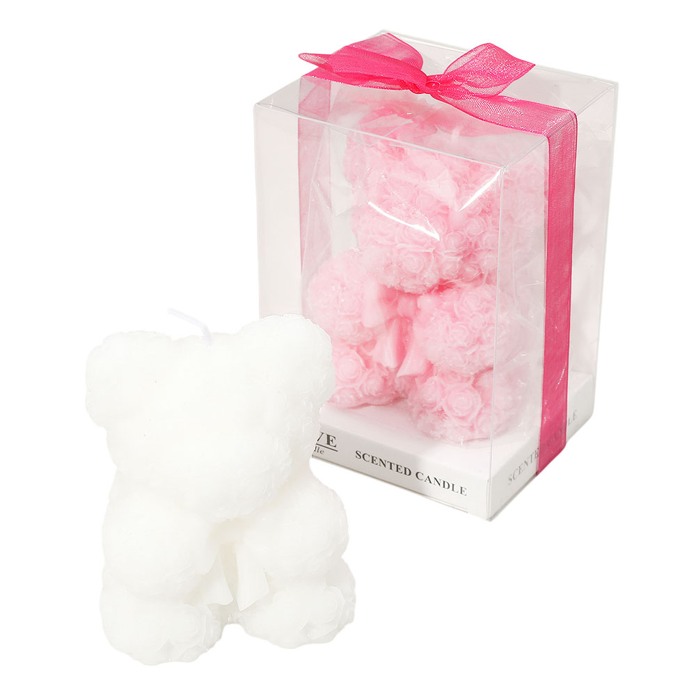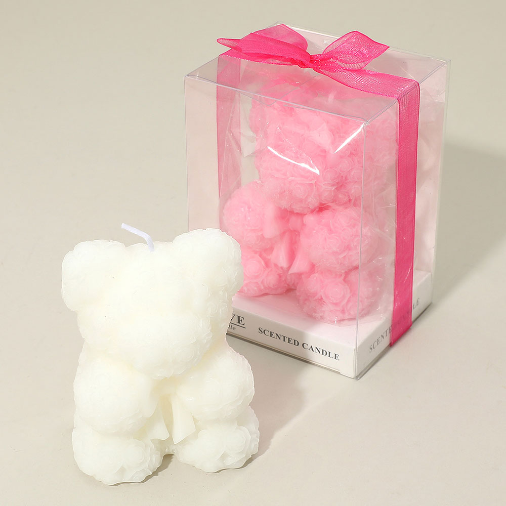 • Adorable bear-shaped scented candle presented in a clear gift box with ribbon. Perfect for gifting, home dĂ©cor, or party favors. Adds a charming touch with a soft fragrance and unique design.