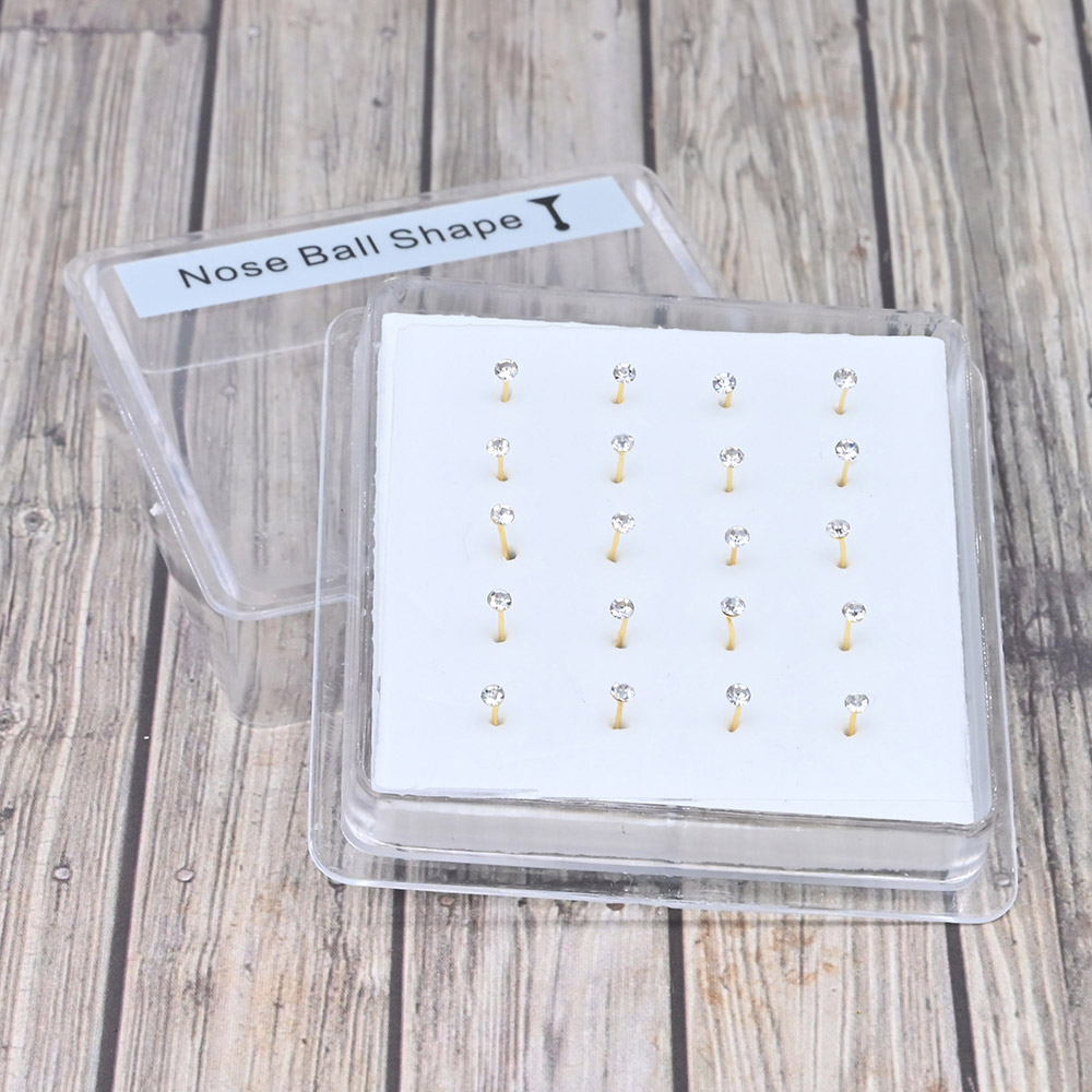 20PCS - 1.5mm Round Clear CZ Nose Pins