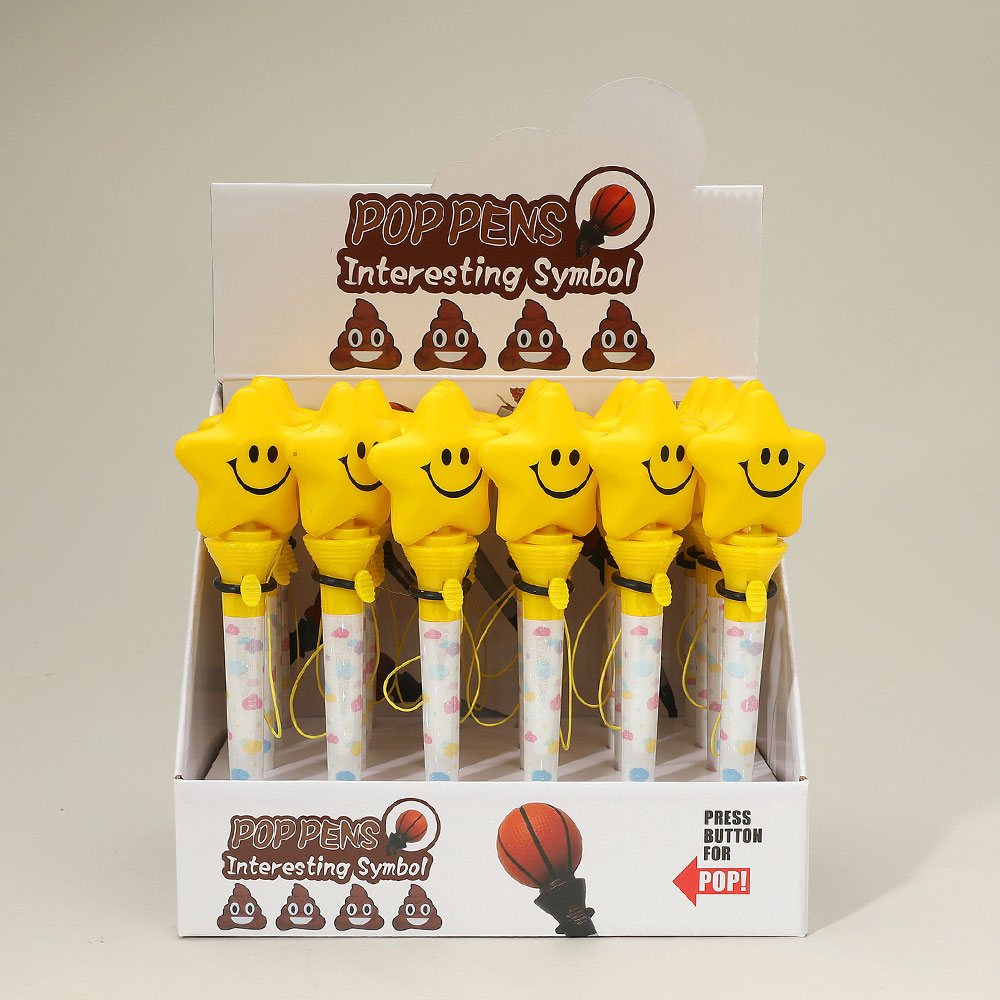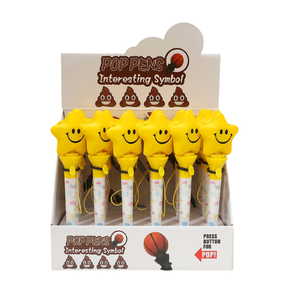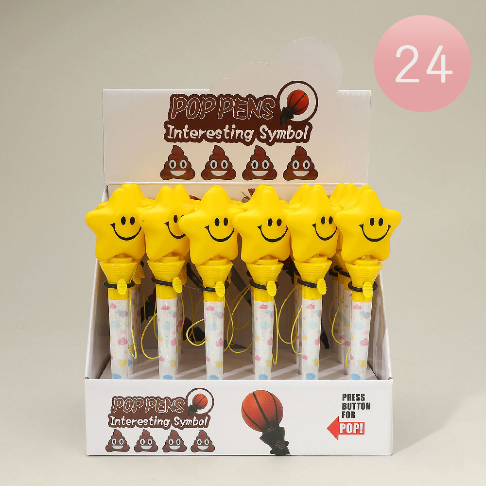 Details • Size : 2.1" X 7" • Bring joy to writing with this 24-pack of smiley star pop pens. Each pen features a cheerful star topper that pops up when pressed, adding interactive fun. Great for classroom rewards, party favors, or desk accessories. A playful stationery item kids and adults will love.