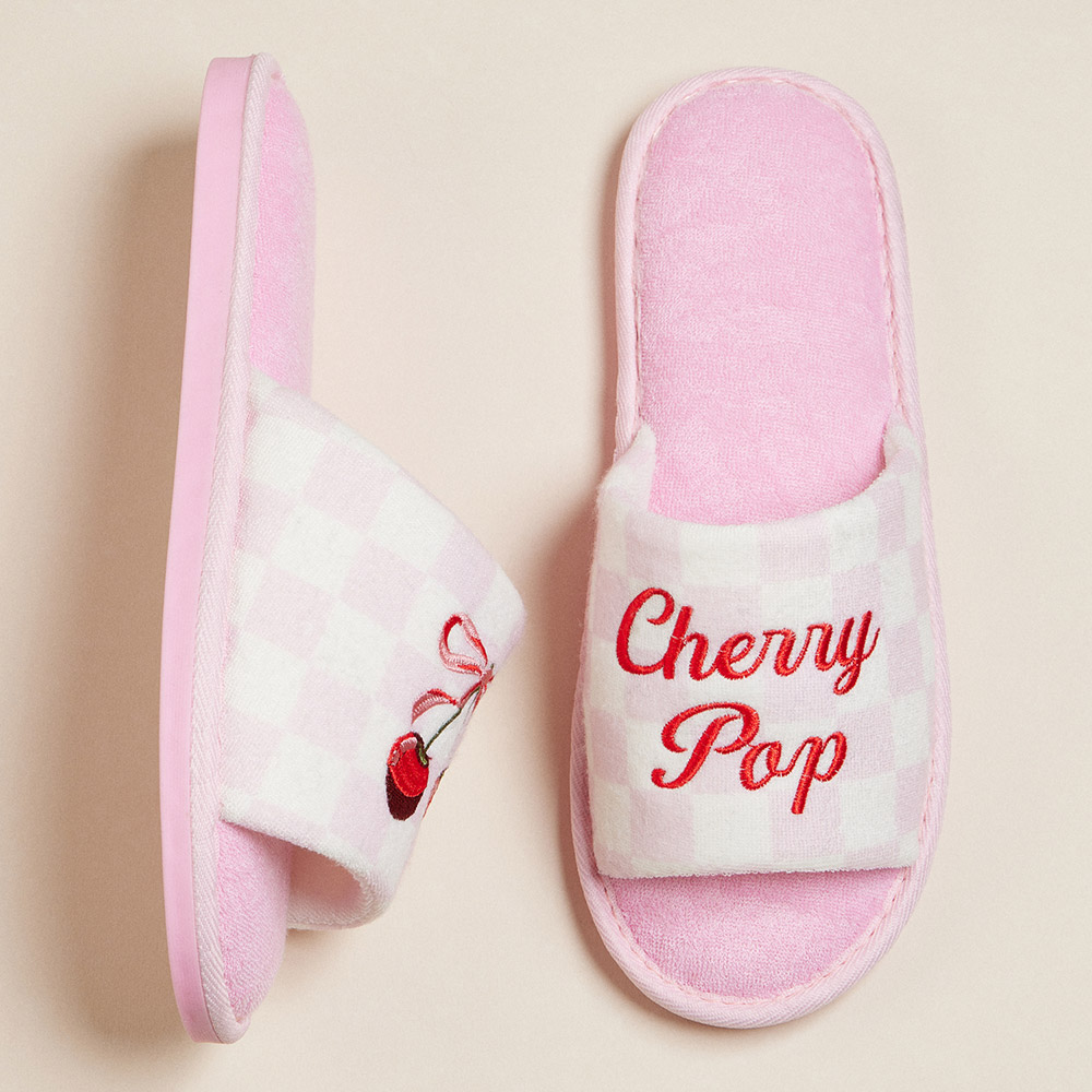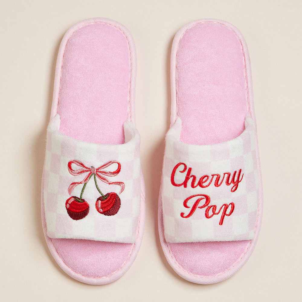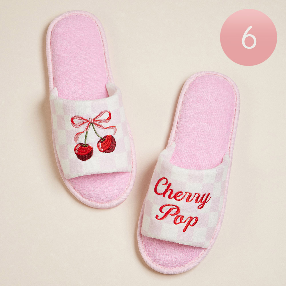 6Pairs - Cherry Bow Cherry Pop Message Embroidered Checkered Home Indoor Floor Slippers