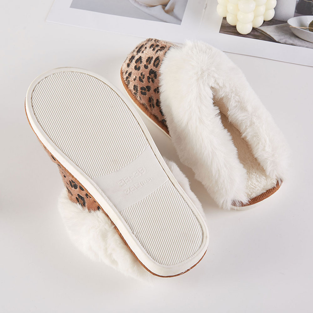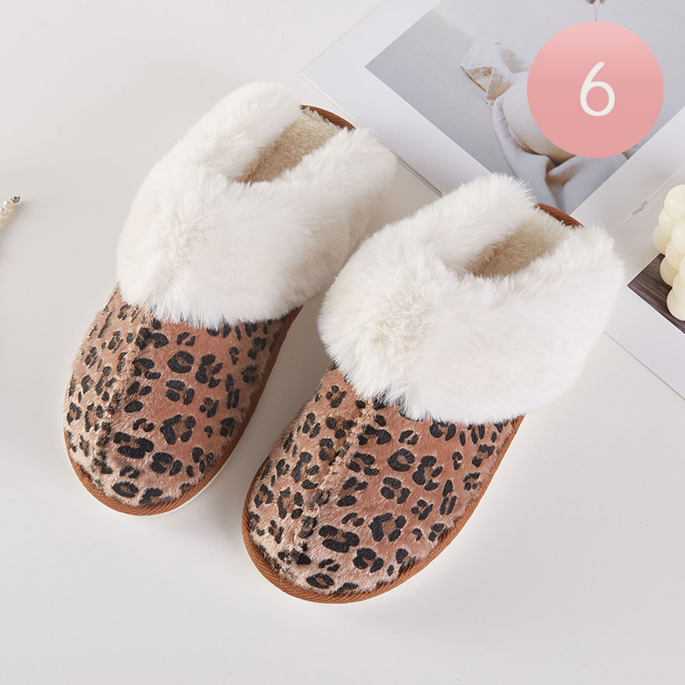 Details • Size : 6 Pairs Assorted size in each pack • 2 Small, 3 Medium, 1 Large • S: women size 6-7 (260 mm) 38-39 • M: women size 8-9 (270mm) 40-41 • L: women size 10-11 (280mm) 42-43 • Material: 50% PVC, 50% Polyester • Step into plush comfort with these fuzzy indoor slippers featuring a bold leopard print and ultra-soft cuffed lining. Perfect for chilly mornings and cozy nights, they offer warmth, support, and a touch of wild flair to your loungewear routine. A must-have for stylish comfort seekers.