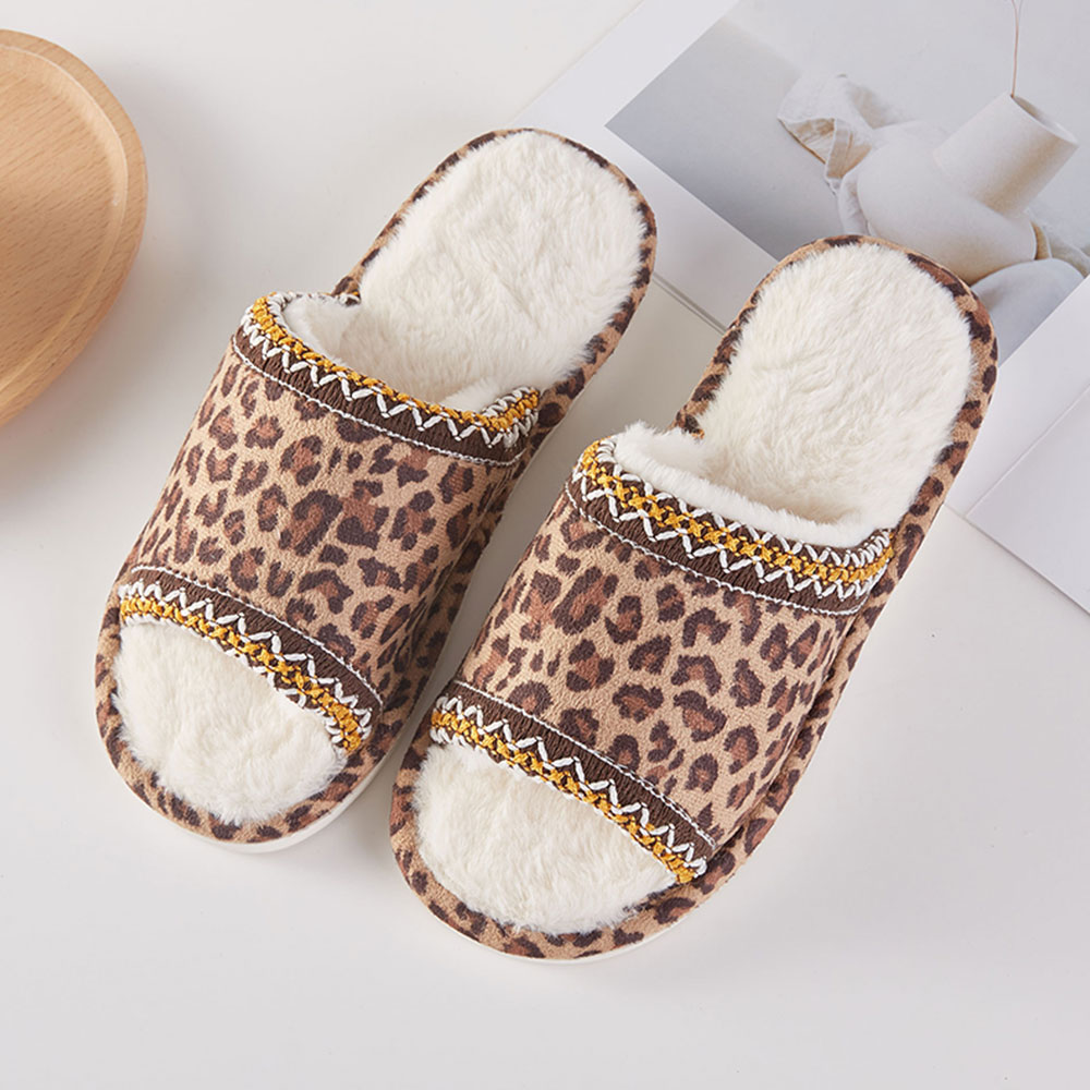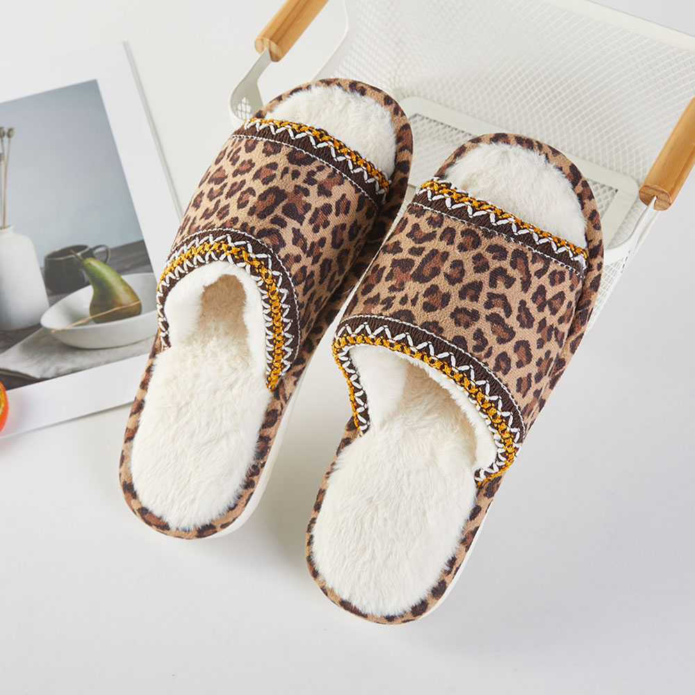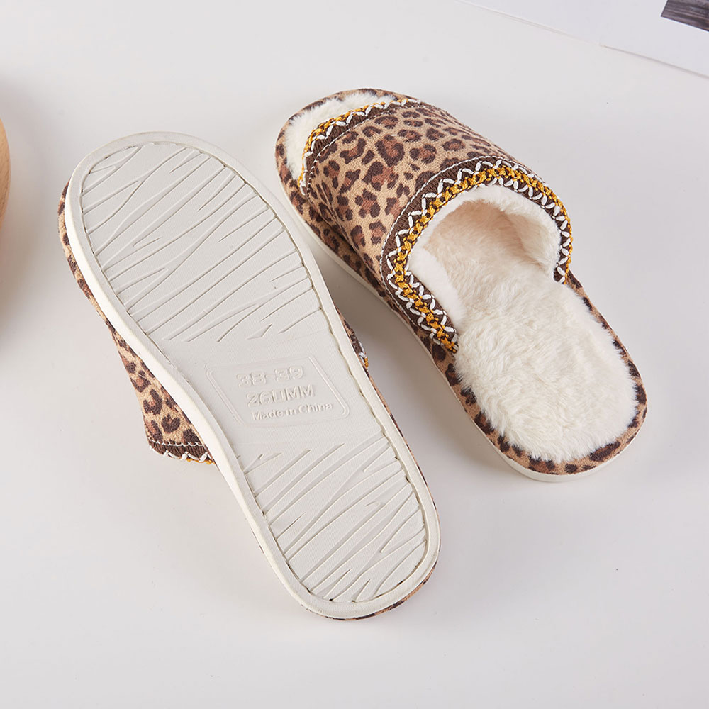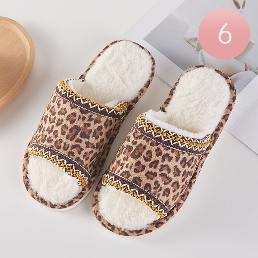 Details • Size : 6 Pairs Assorted size in each pack • 2 Small, 3 Medium, 1 Large • S: women size 6-7 (260 mm) 38-39 • M: women size 8-9 (270mm) 40-41 • L: women size 10-11 (280mm) 42-43 • Material: 50% PVC, 50% Polyester • Make a statement while staying cozy in these leopard print indoor slippers featuring a soft plush lining and cushioned sole. Designed for warmth and comfort, the eye-catching pattern and detailed embroidery bring flair to your lounging essentials. Perfect for stylish relaxation.