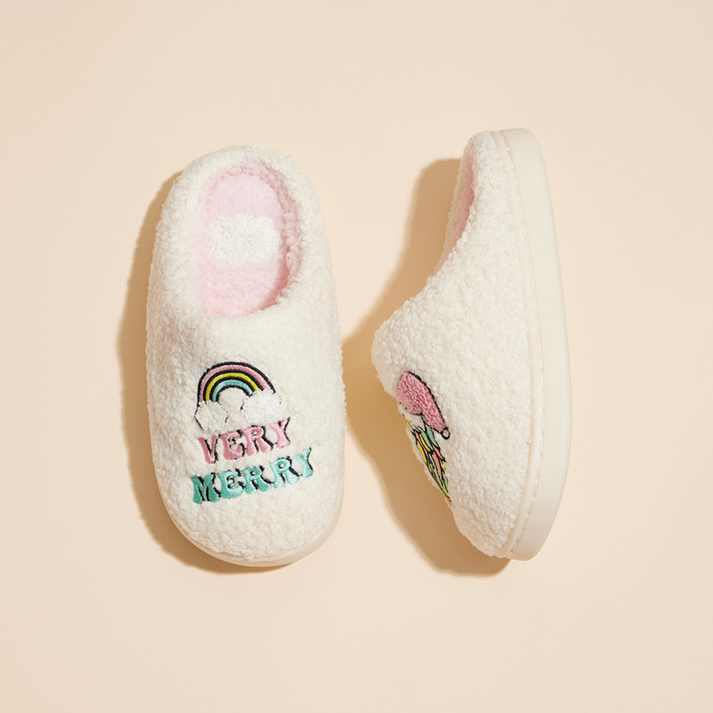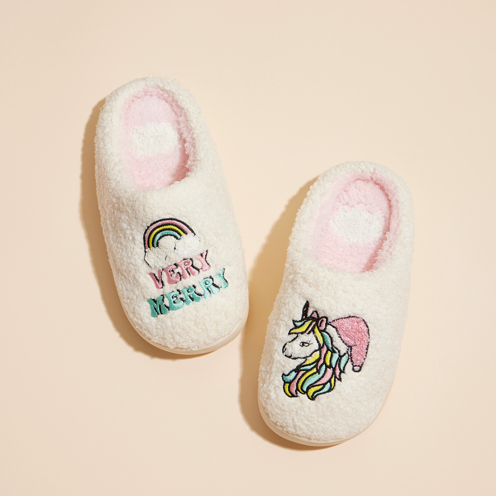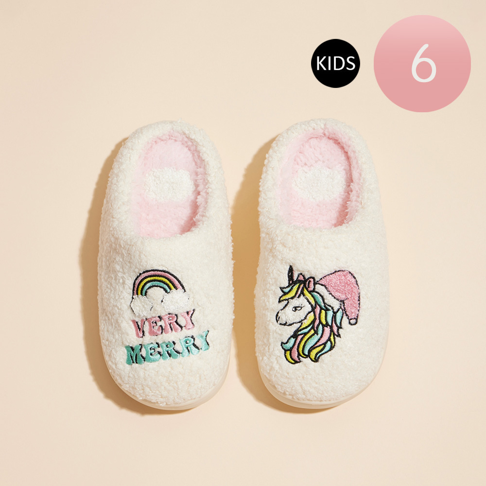 6Pairs - Very Merry Message Unicorn Kid's Home Slippers