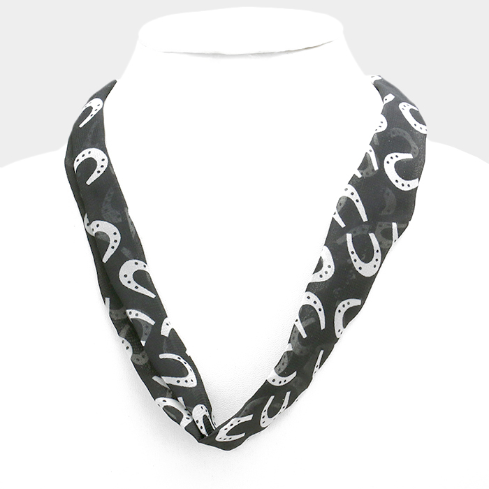 12 PCS - Horseshoe print chiffon scarf necklaces