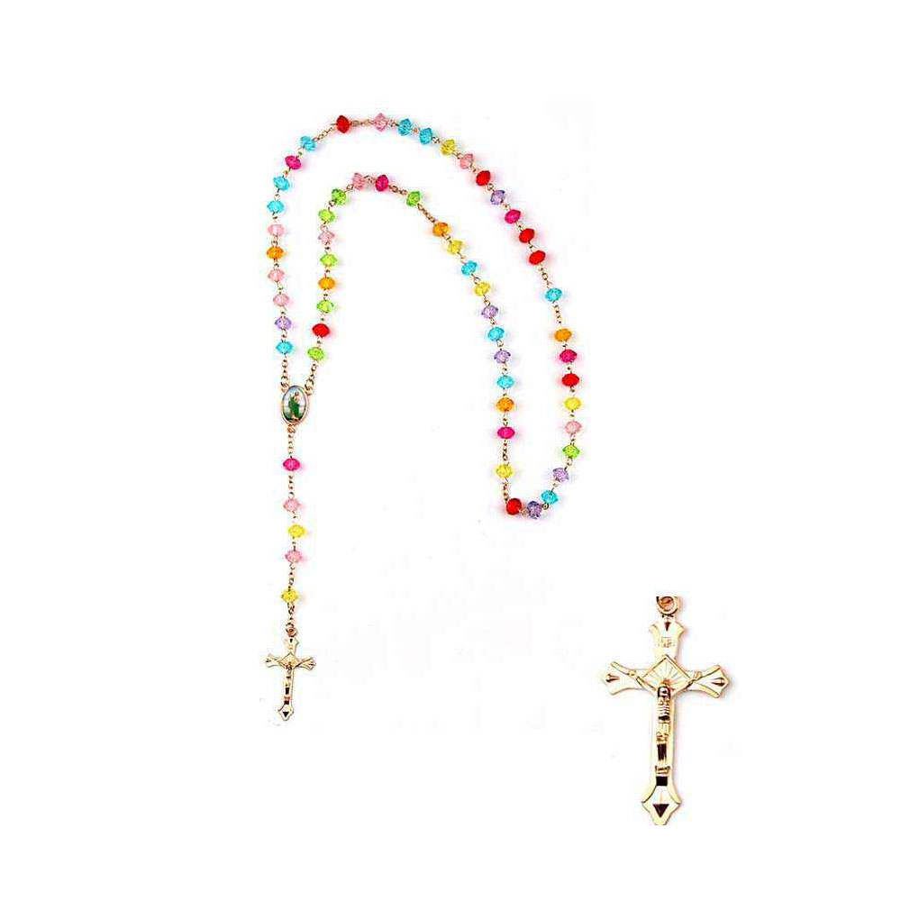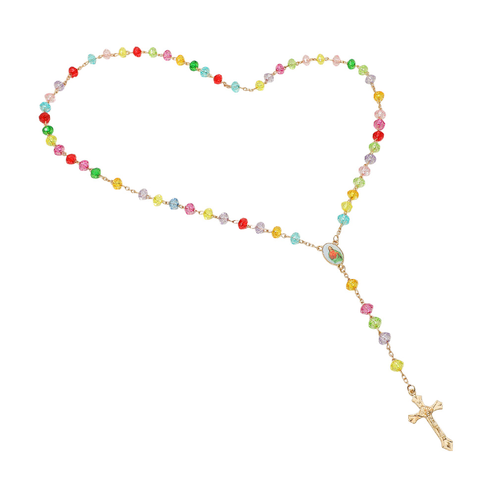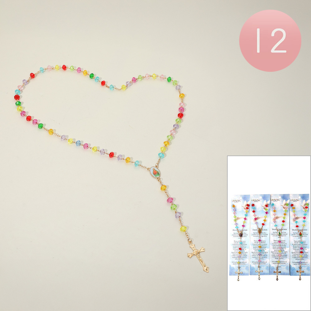 Details • Necklace Size : 27" L • Decor Size : 5.5" L • This set includes 12 vibrant rosary necklaces, each featuring a detailed crucifix and coordinating prayer card. Ideal for group events, gifting, or spiritual use, these rosaries offer a meaningful and colorful way to support faith and devotion.