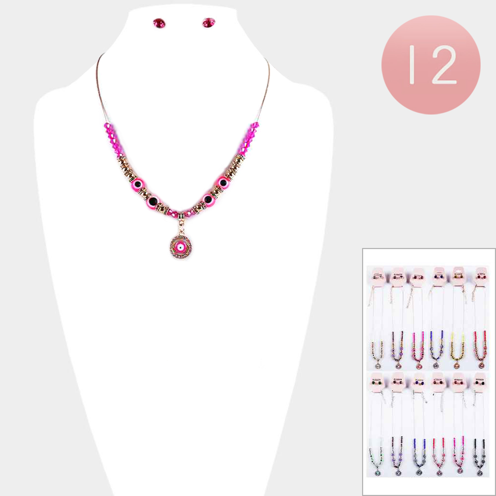 12PCS - Evil Eye Pendant Beaded Necklaces