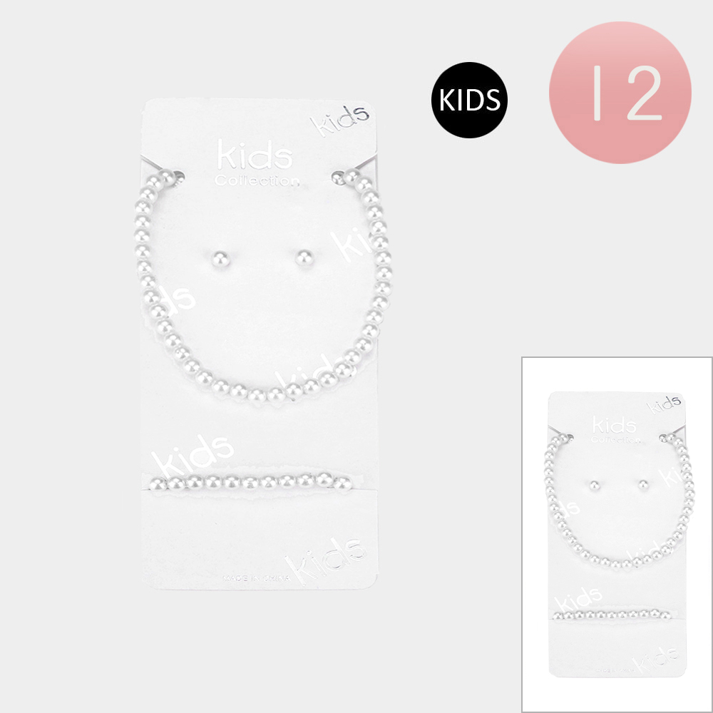 12 SET OF 2 - Faux Pearl Beaded Kids Bracelet Necklace Sets