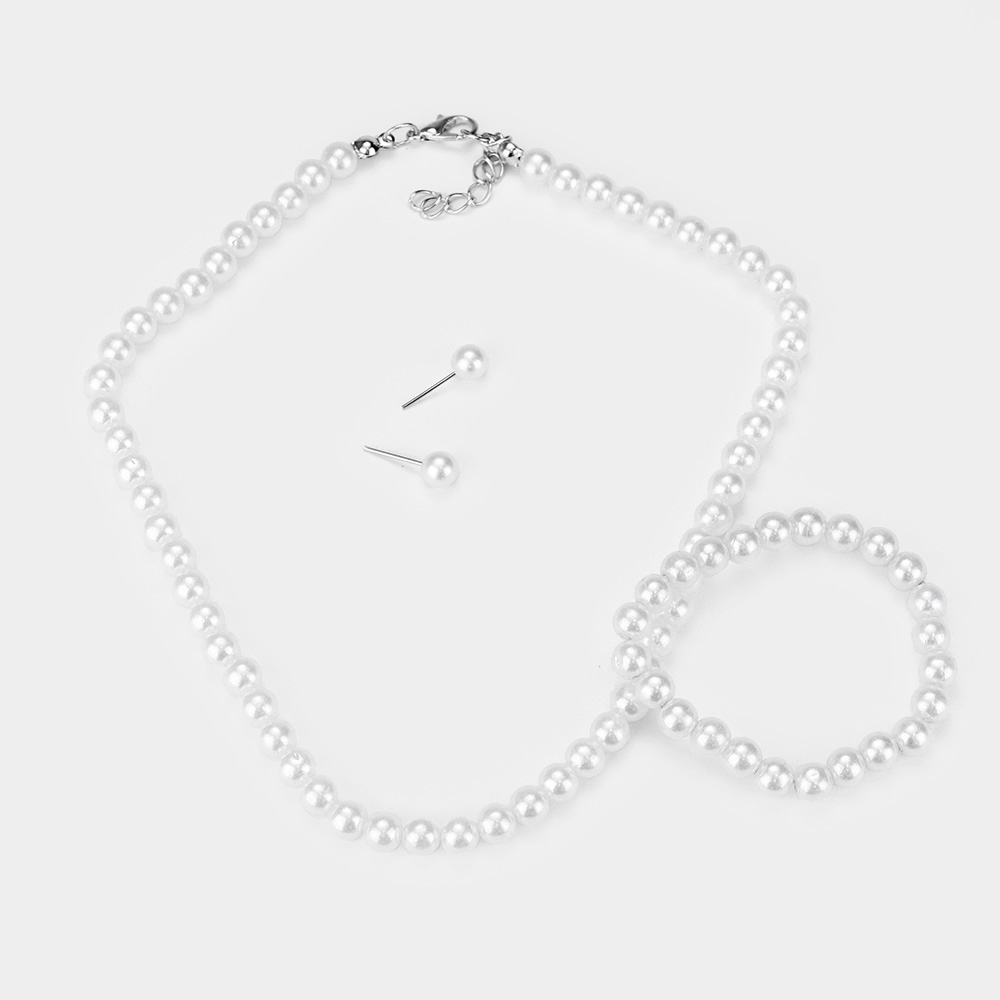 12PCS - Faux Pearl Beaded Kids Bracelet Necklace Sets