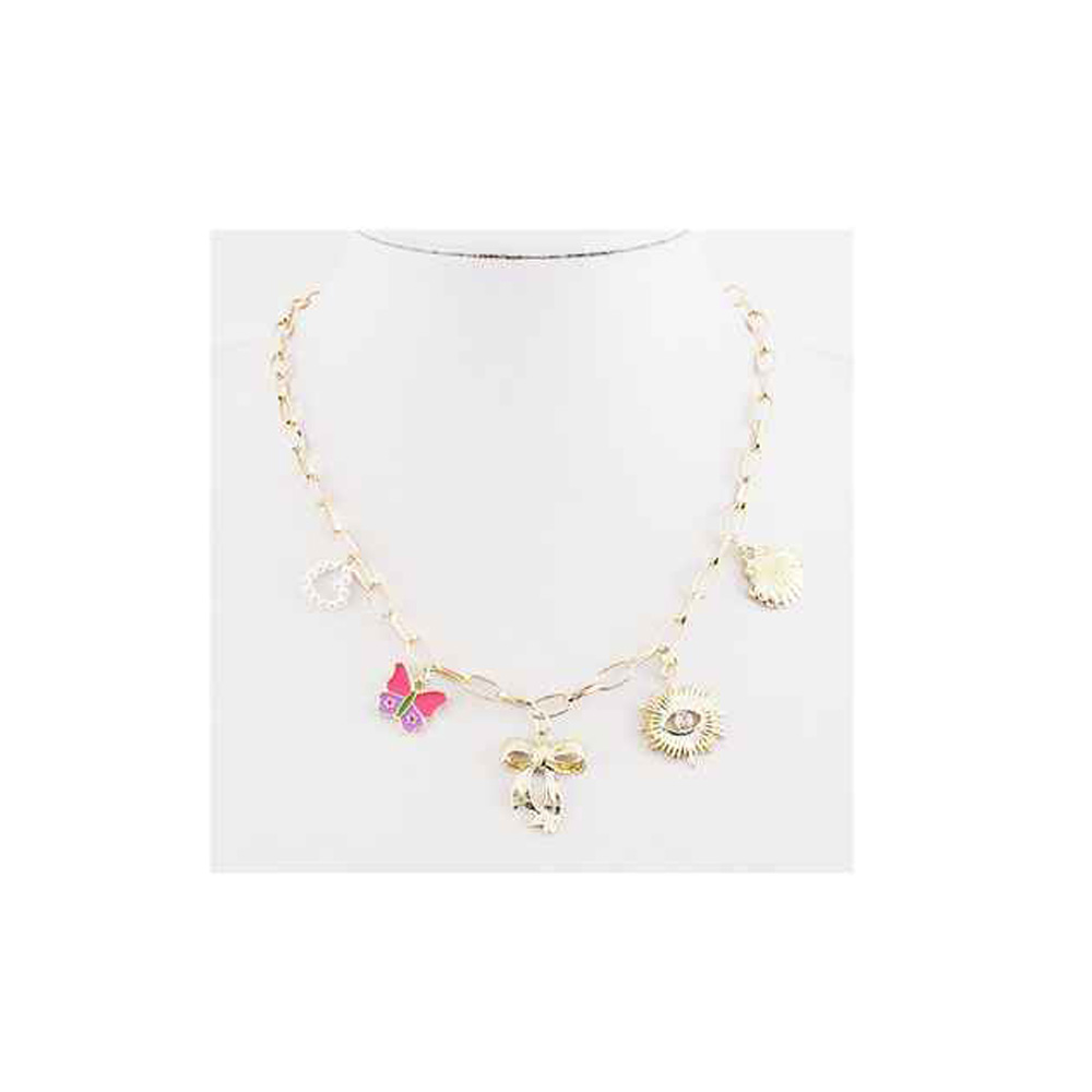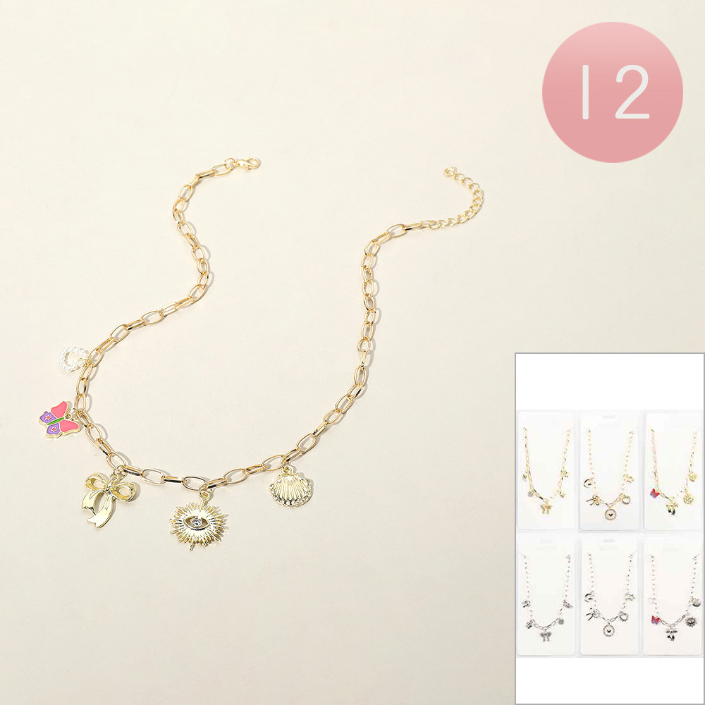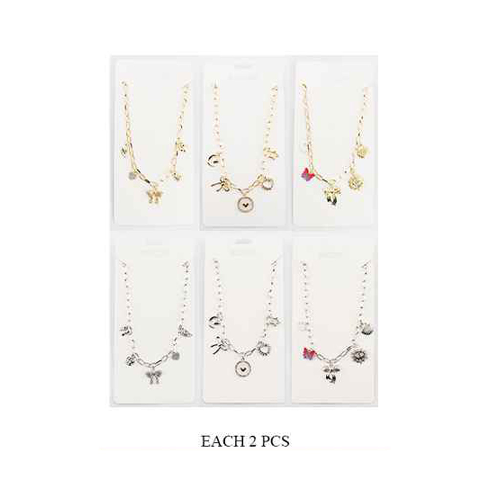 Details • Necklace Size : 16.5" + 2.25" L • Decor Size : 1" L • This 12-piece necklace set features assorted charm styles on fashionable chains, including fun symbols and detailed pendants. Ideal for parties, gifts, or everyday outfits, these necklaces add a touch of playful personality to any look.