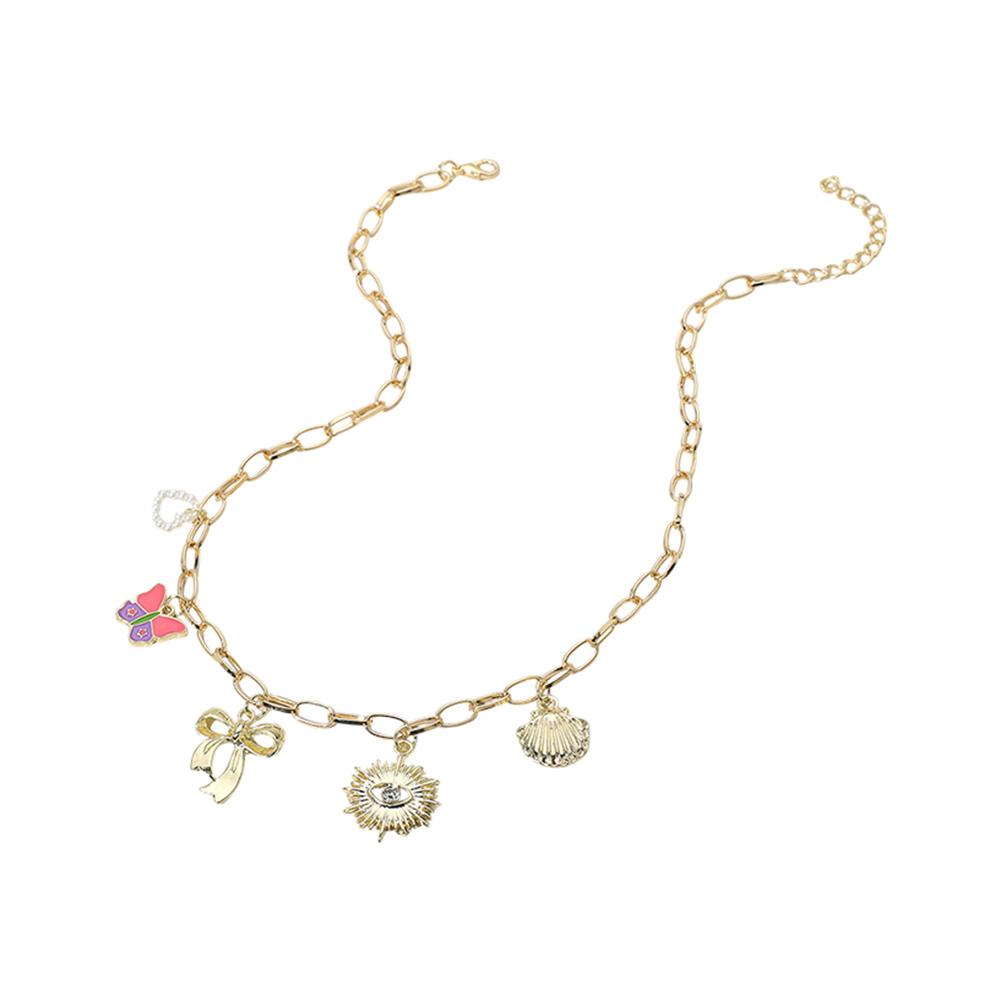 12PCS - Pearl Beaded Heart Metal Bow Evil Eye Shell Enamel Butterfly Charm Station Paperclip Chain Bracelets