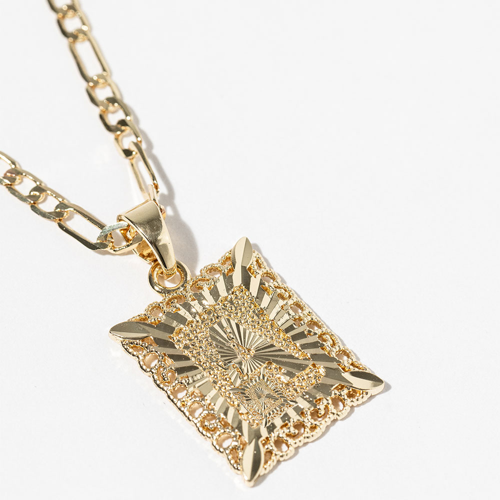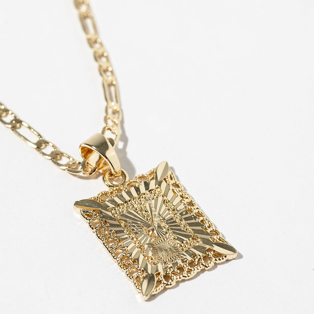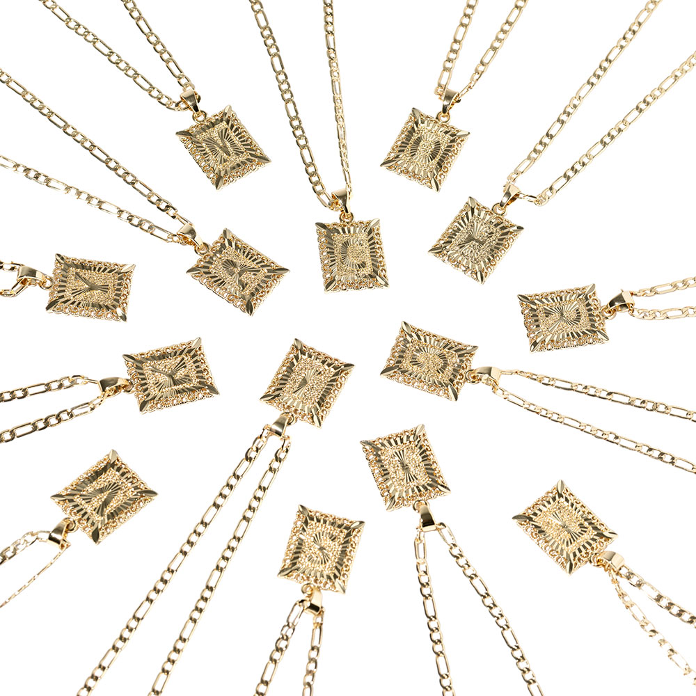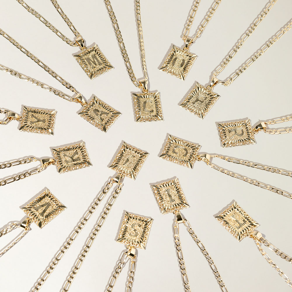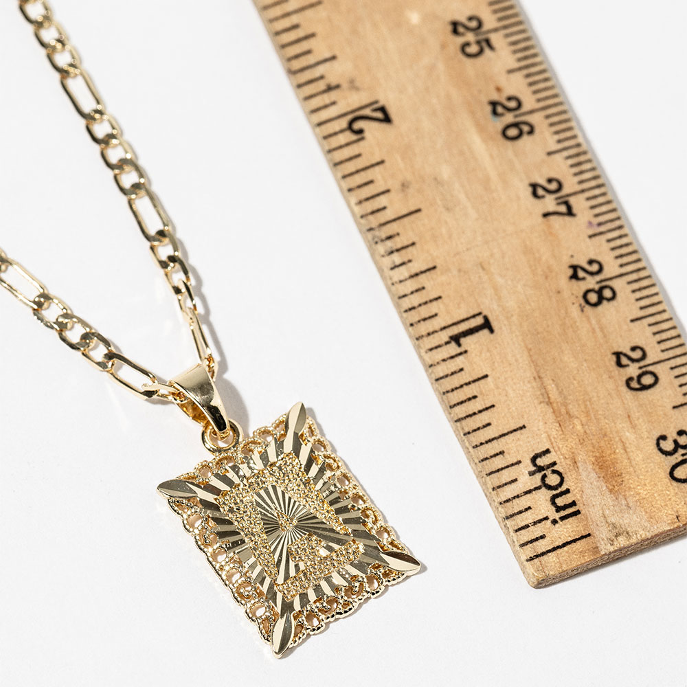 Details • Necklace Size : 16.5" + 1" L • Pendant Size : 0.7" X 1.2" • Textured monogram square pendant necklace showcases a radiant geometric charm suspended on a sleek chain for effortless everyday style. The detailed design reflects light beautifully, offering a modern statement that layers easily or stands out as a bold solo accent piece. • Gold Dipped • Lead and Nickel Compliant • Made In Korea