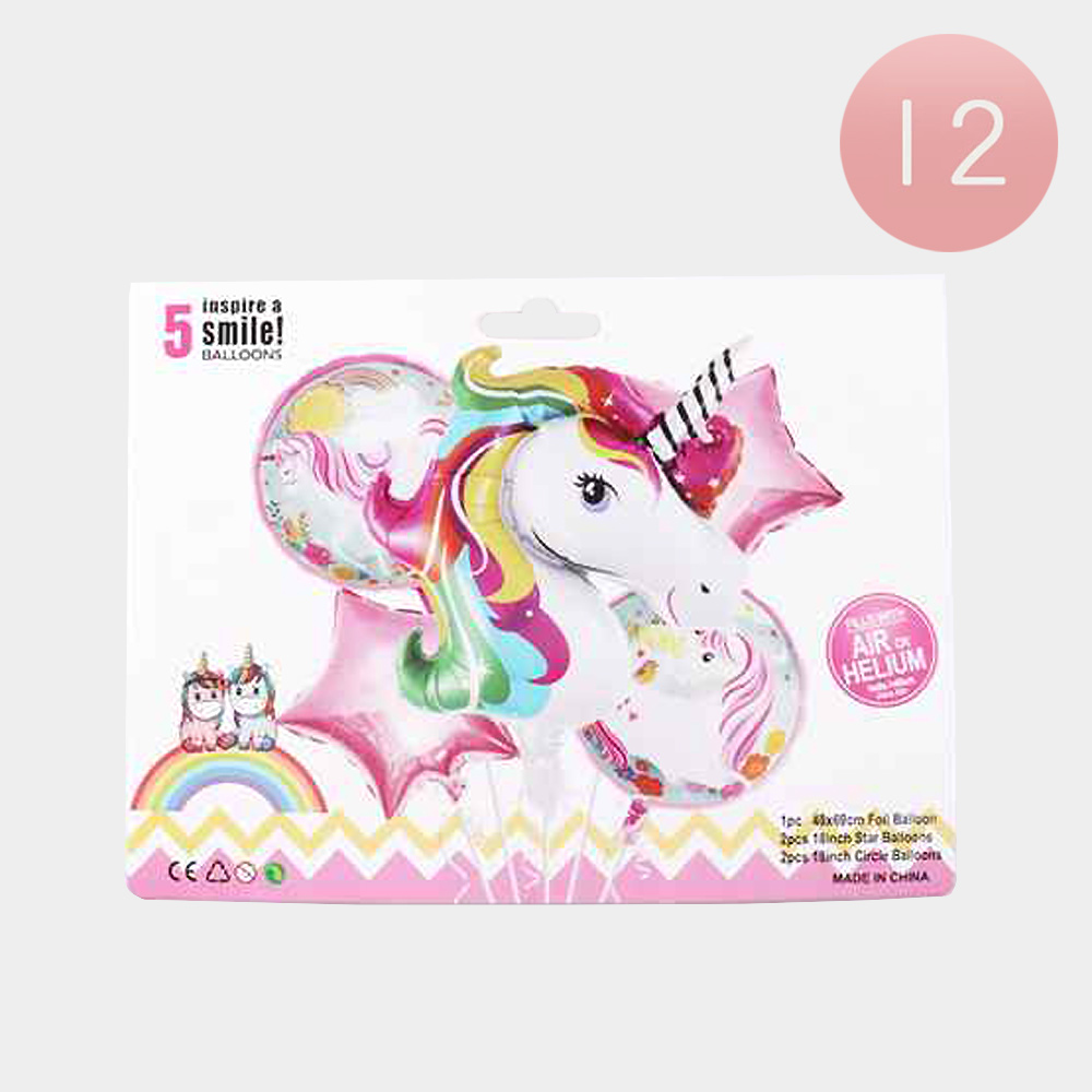 12 SET OF 5 - Unicorn Star Decorative Balloon Sets