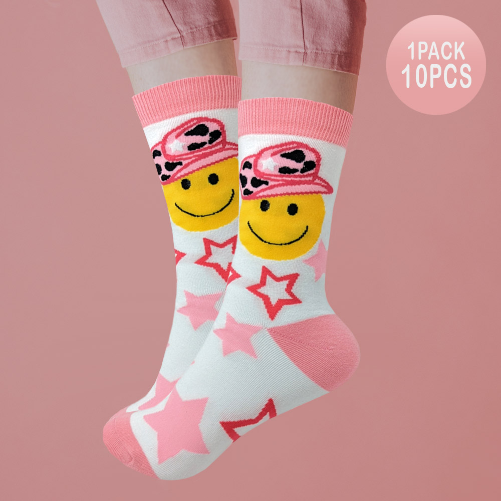 10Pairs - Animal Patterned Hat Smile Star Socks