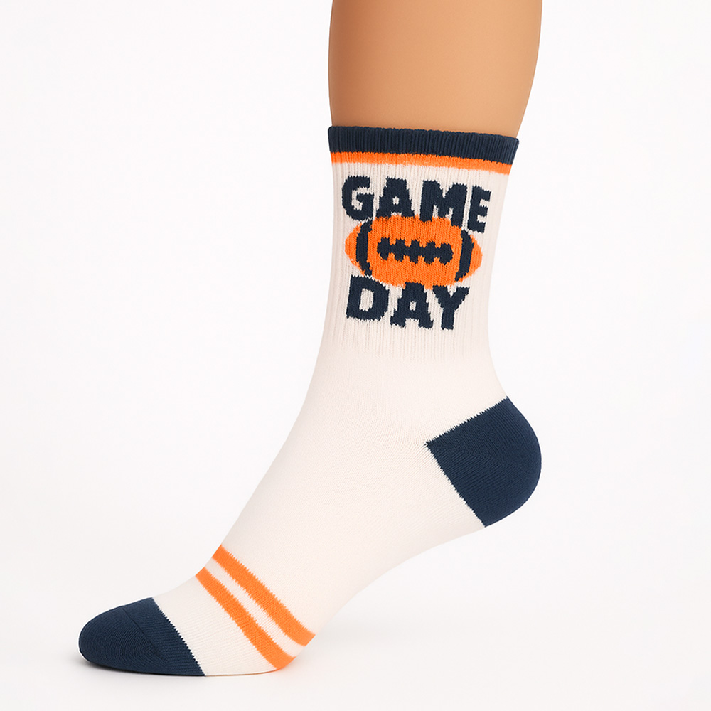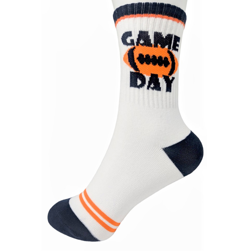 • Step up your team spirit with these gameday crew socks featuring a bold football and “Game Day” design. Perfect for tailgates, sports events, or casual wear, this 10-pack offers comfort and style, making them an essential accessory for every dedicated sports fan.