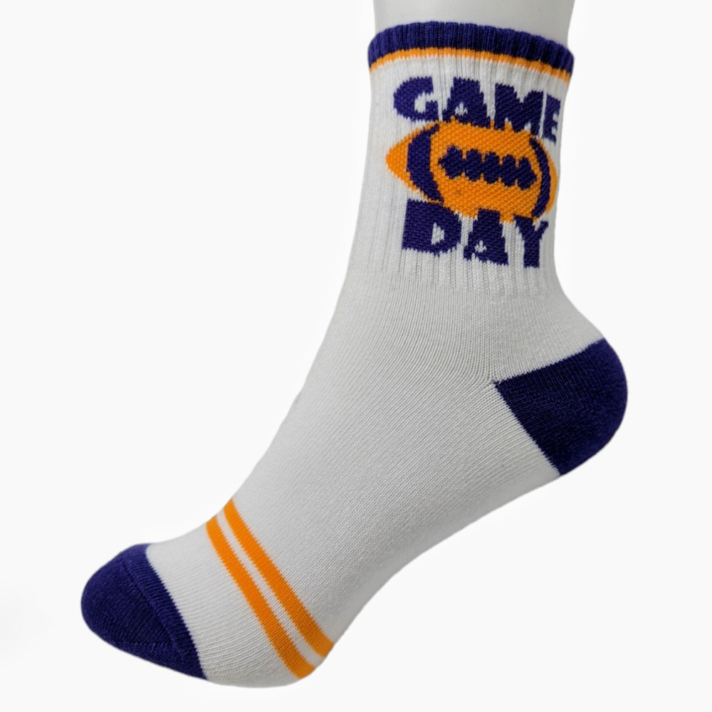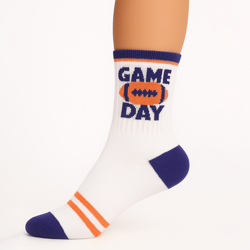 • Step up your team spirit with these gameday crew socks featuring a bold football and “Game Day” design. Perfect for tailgates, sports events, or casual wear, this 10-pack offers comfort and style, making them an essential accessory for every dedicated sports fan.