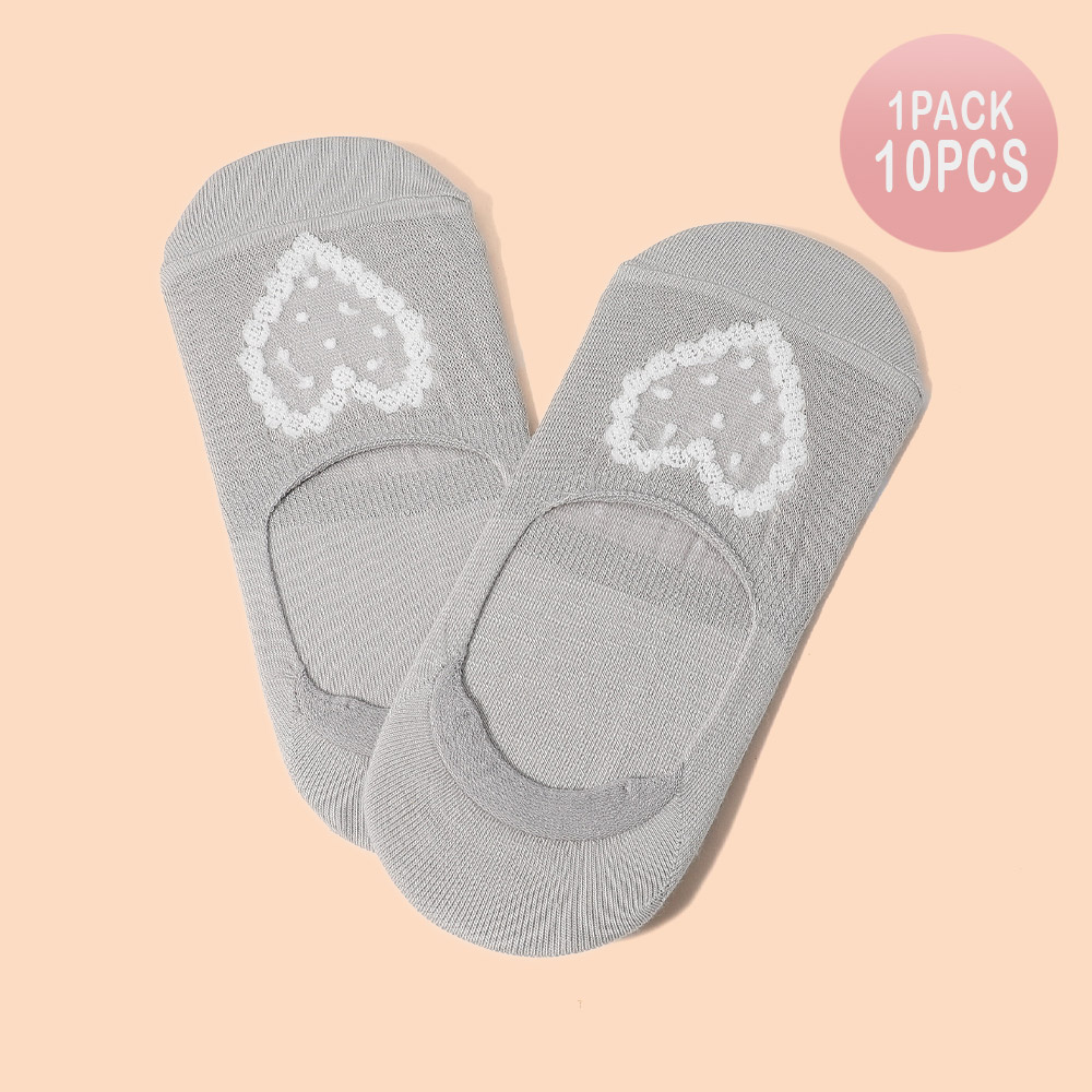 Details • Size : 9 - 11 • Material : Cotton, Spandex, Polyester, Polyurethane • Comfortable no-show socks featuring a cute heart pattern. Ideal for everyday wear with flats or sneakers. Breathable, soft fabric and a snug fit. Comes in a value pack of 10 pairs. • Made In Korea