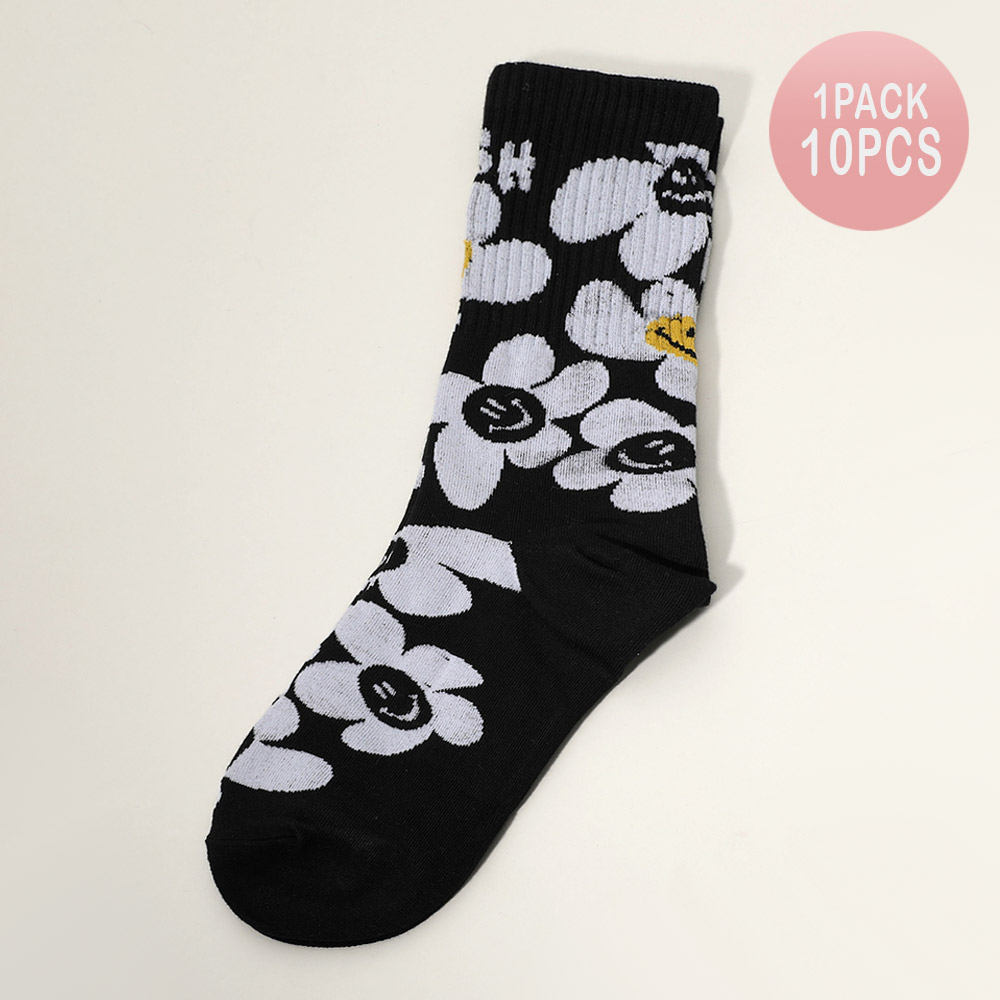 10Pairs - Smile Flower Pattern Printed Socks
