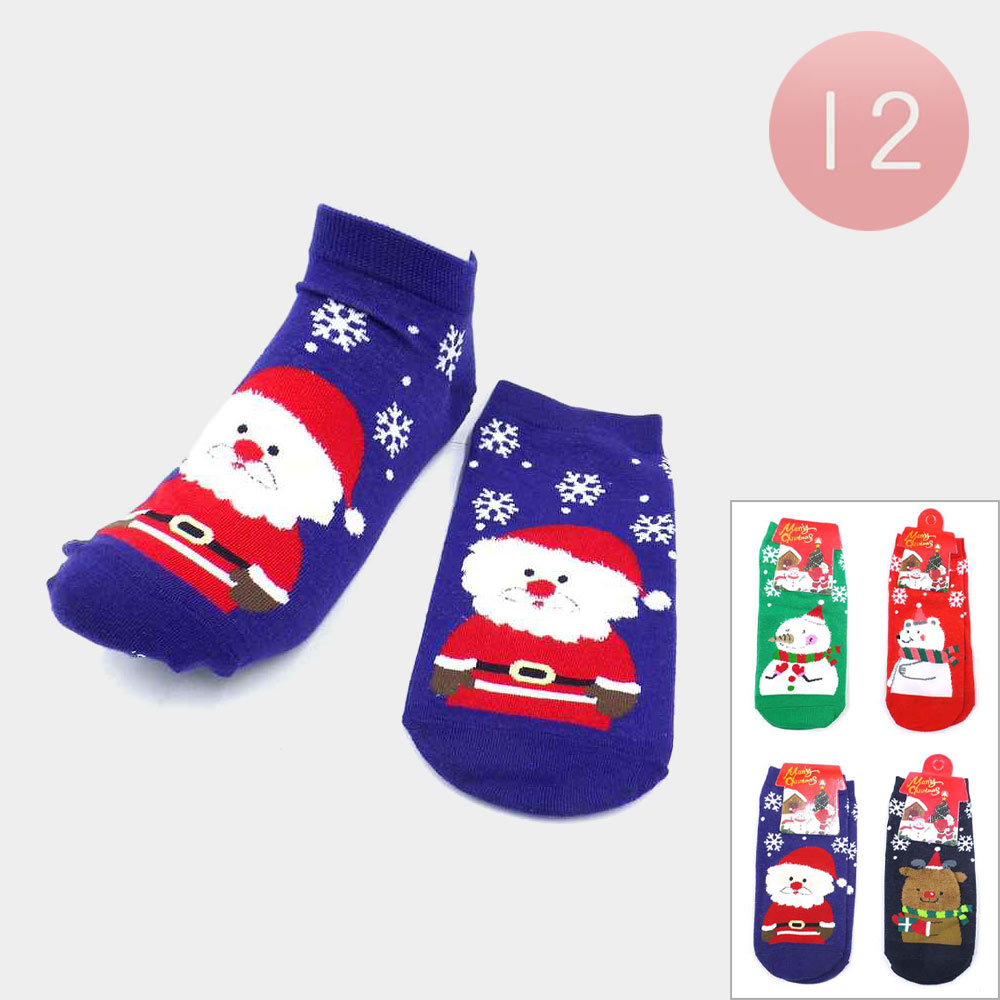 12Pairs - Christmas Santa Claus Snowman Polar Bear Rudolph Socks