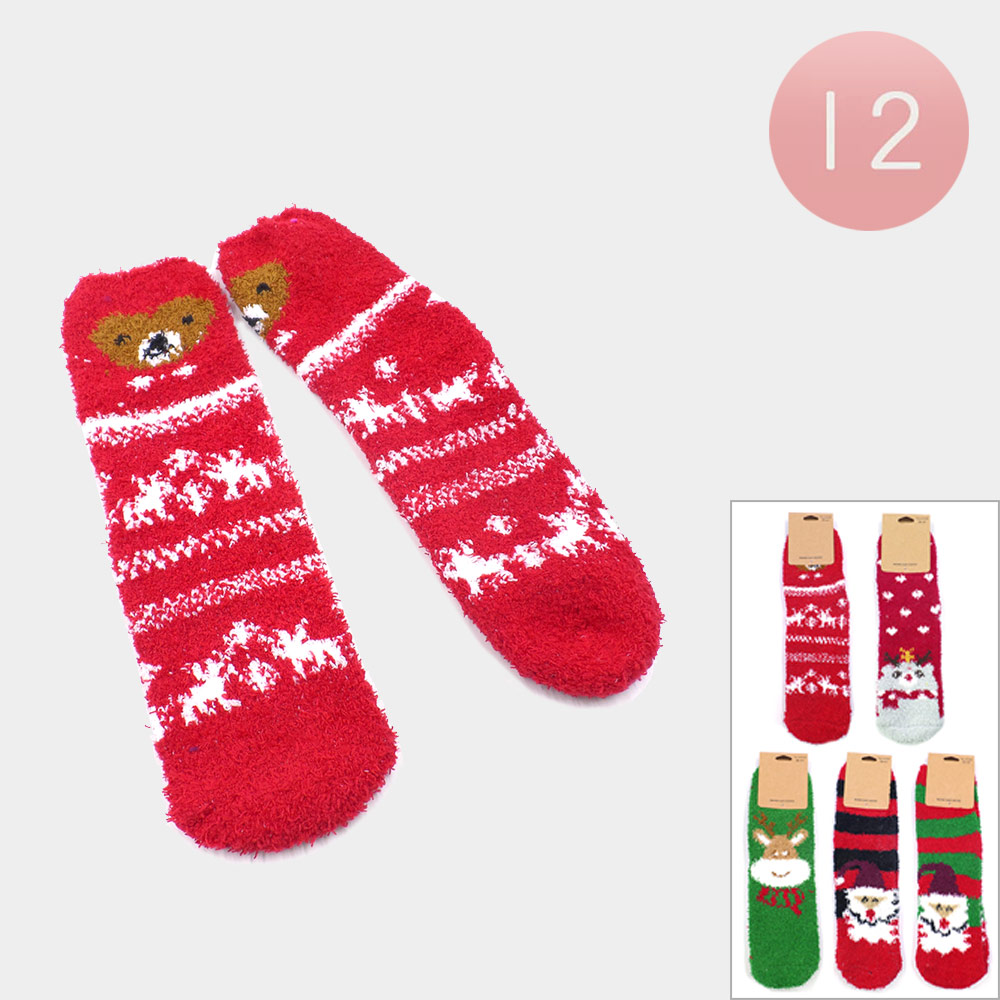 Details • Size : 9 - 11 • Material : 93% Polyester, 7% Elastane • Keep your feet warm and festive with these fuzzy holiday socks featuring adorable character designs and seasonal patterns. Soft and stretchy for a comfy fit, they’re perfect for lounging, gifting, or adding a playful touch to your winter wardrobe. Sold in assorted cheerful styles.