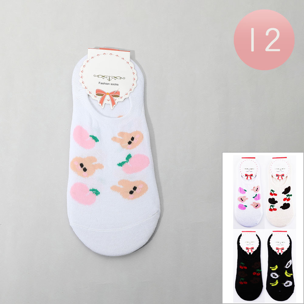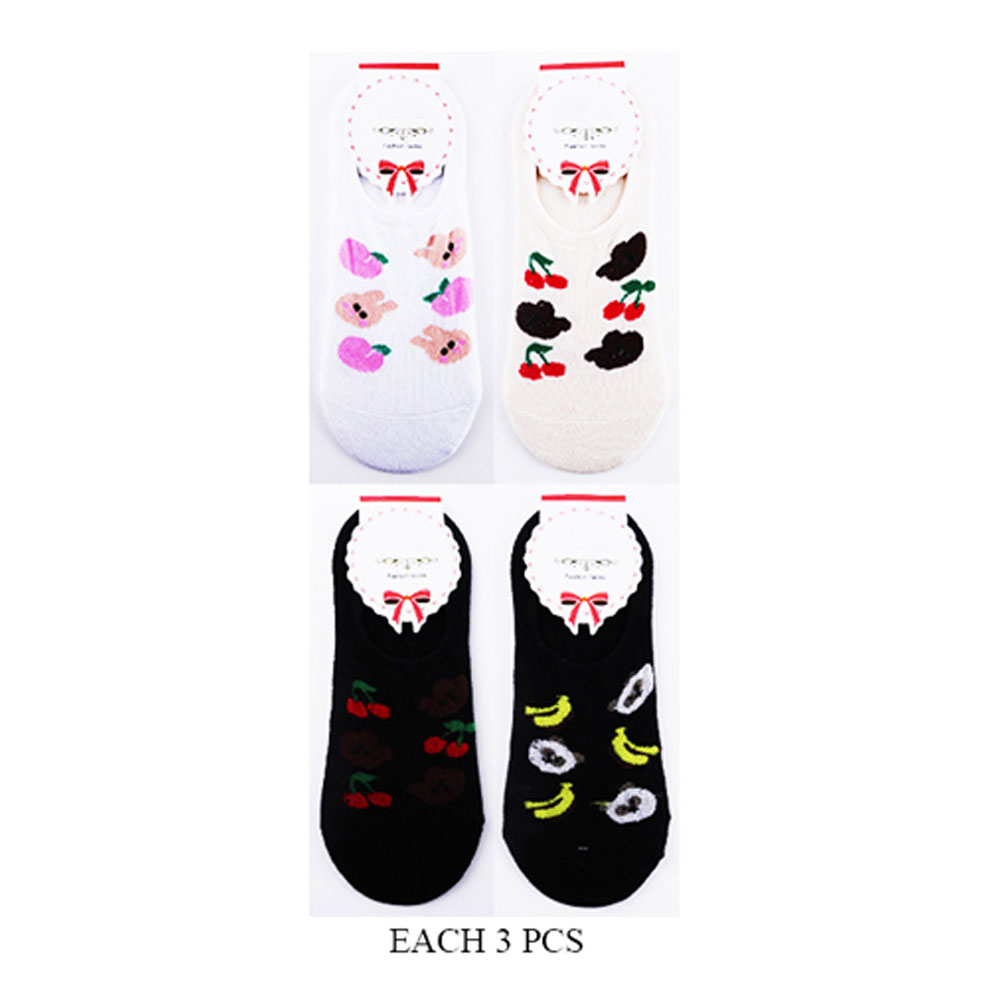 Details • Size : 9 - 11 • Material : 92% Polyester, 8% Elastane • Charming no-show socks featuring fun fruit and face patterns. Soft, stretchy material offers all-day comfort. Includes 12 pairs with assorted designs perfect for everyday wear.