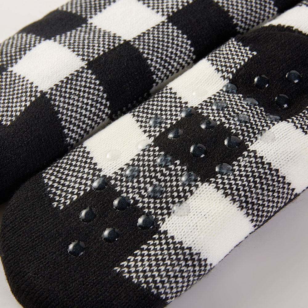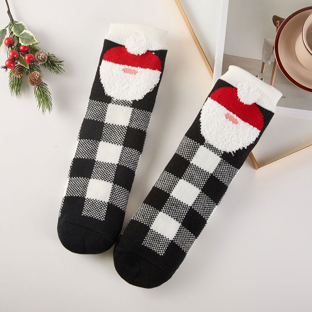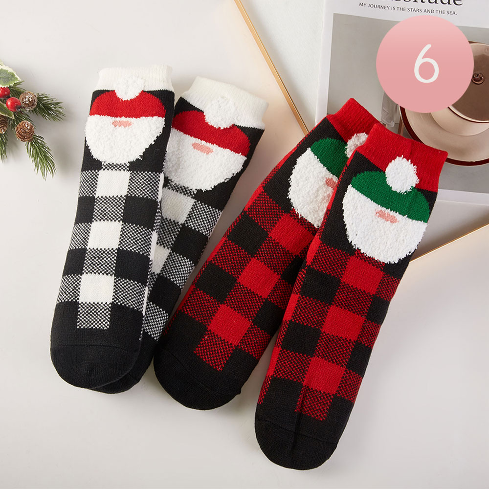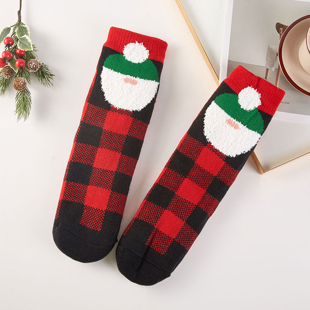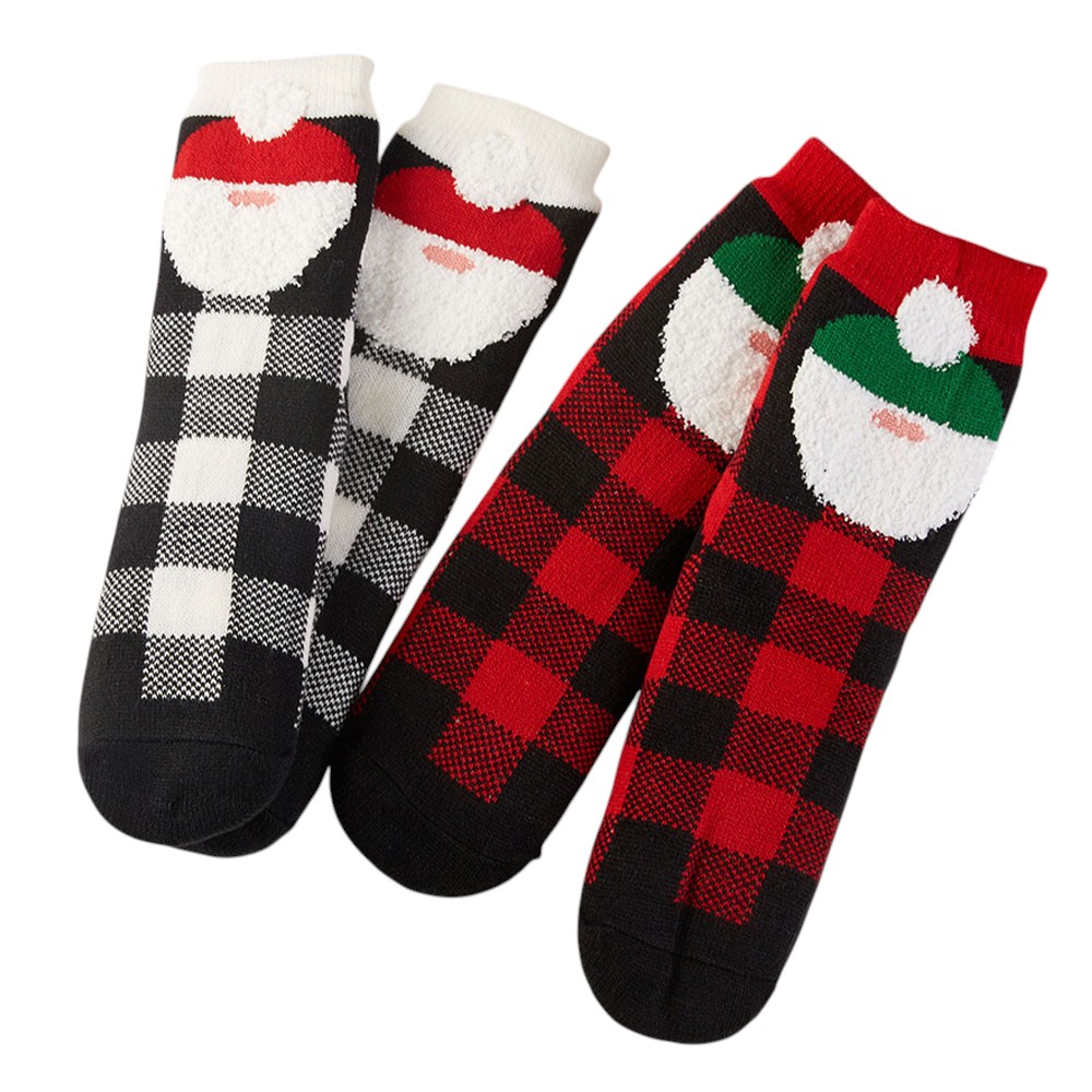 Details • Size : 9 - 11 • Material : 100% Polyester • Stay warm and festive with these holiday socks featuring a cheerful Santa design and grippy soles for added safety. Perfect for winter lounging or holiday gifting. Soft, comfortable, and ideal for keeping feet snug all season long.
