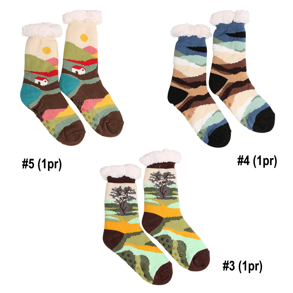 Details • Size : One Size • Material : 100% Polyester • Stay stylish and comfortable with this 6-pair pack of cozy socks featuring bold artistic patterns. Designed with soft lining for extra warmth, these socks are perfect for lounging, everyday wear, or as a fun gift. Add creativity and comfort to your wardrobe with these playful patterned socks.