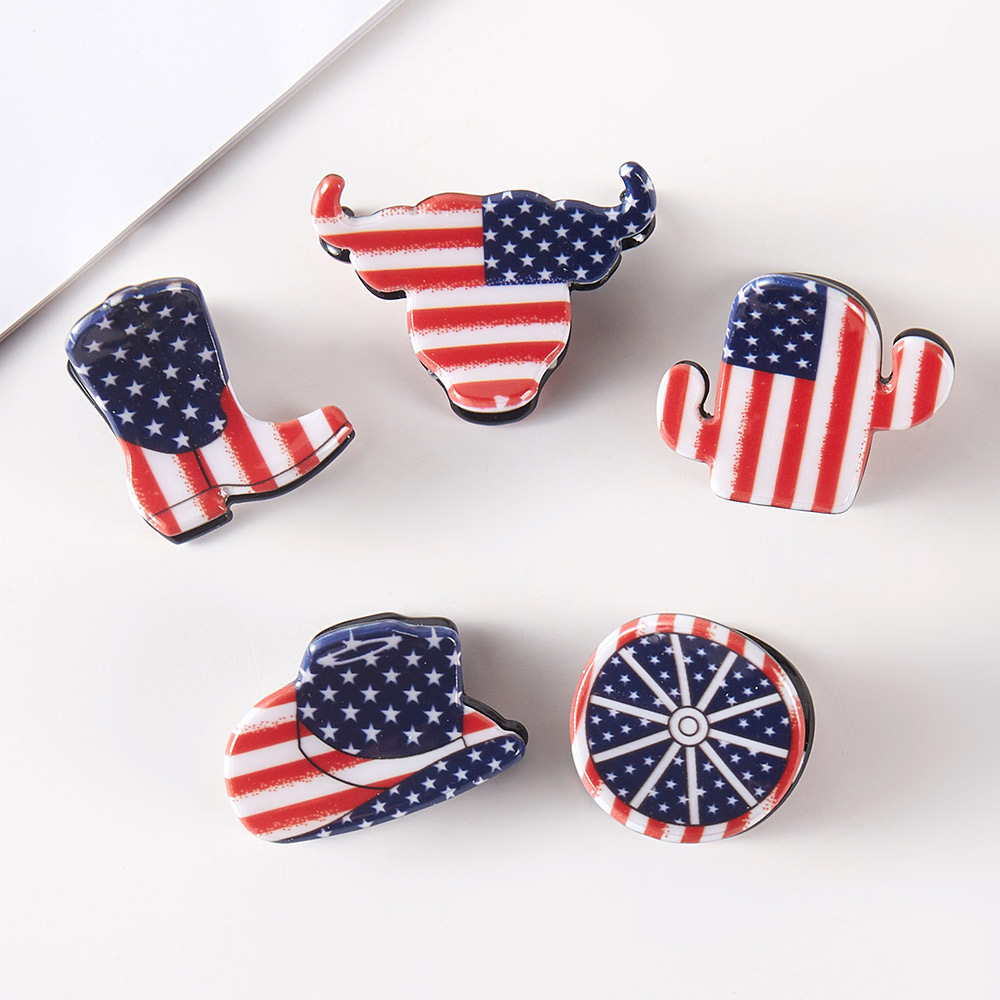 5PCS - Western American USA Flag Printed Hair Claw Clips