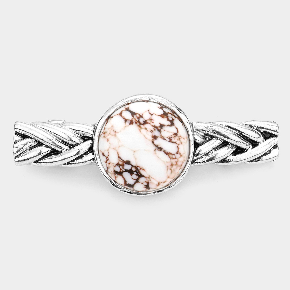 Antique Metal Natural Stone Accented Barrette