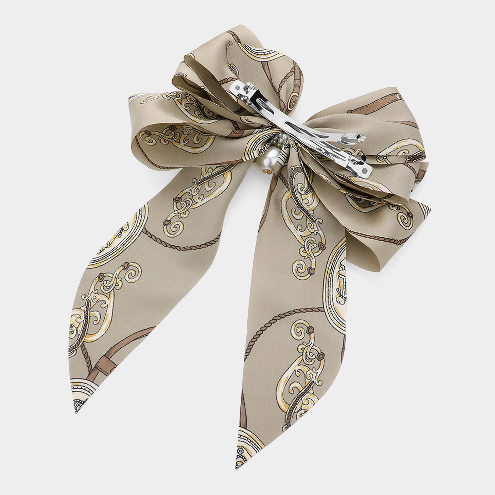 Oversized Pearl Dangle Pointed Chain Pattern Bow Barrette