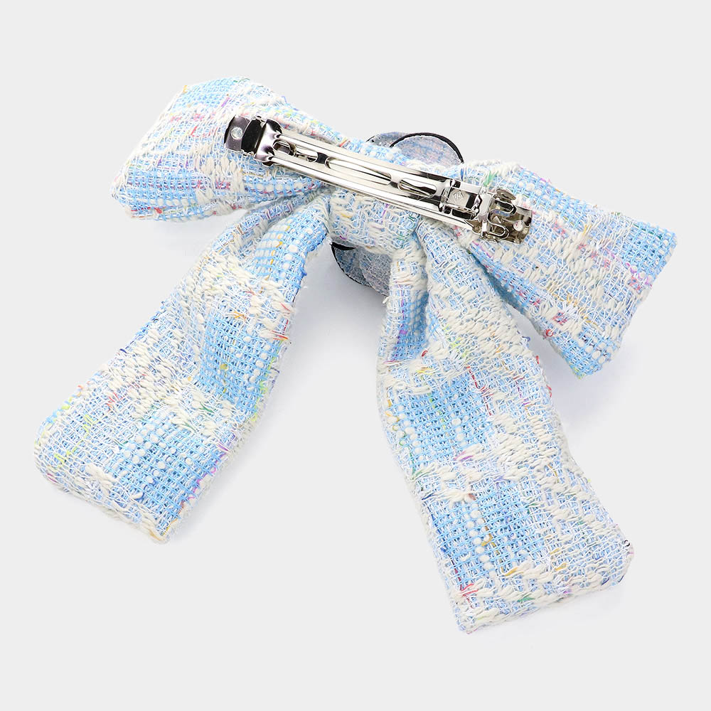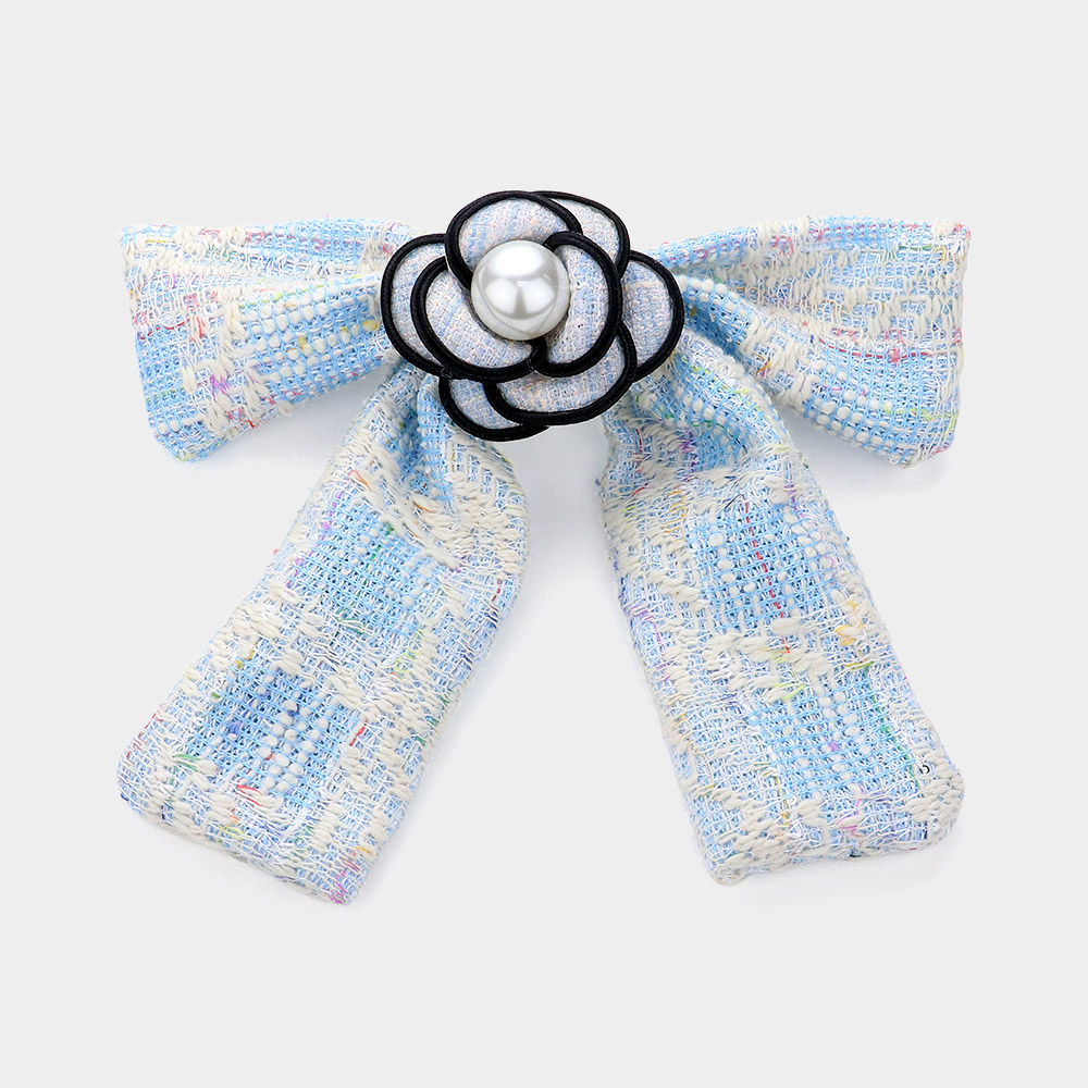 Pearl Pointed Flower Center Tweed Bow Barrette