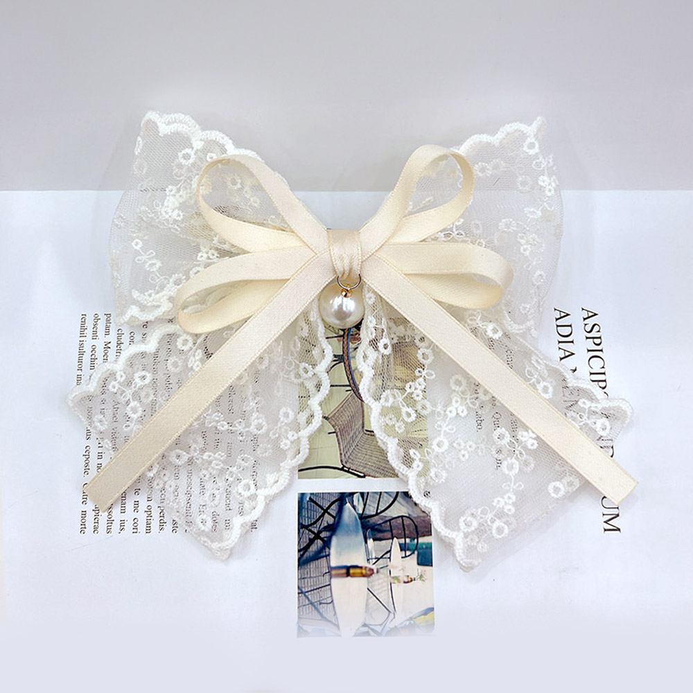 Pearl Pointed Lace Bow Barrette