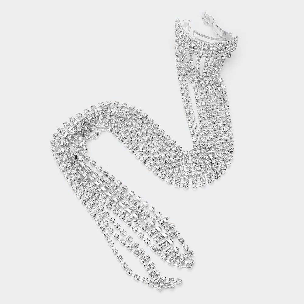 Rhinestone Embellished Metal Chain Hoop Earrings
