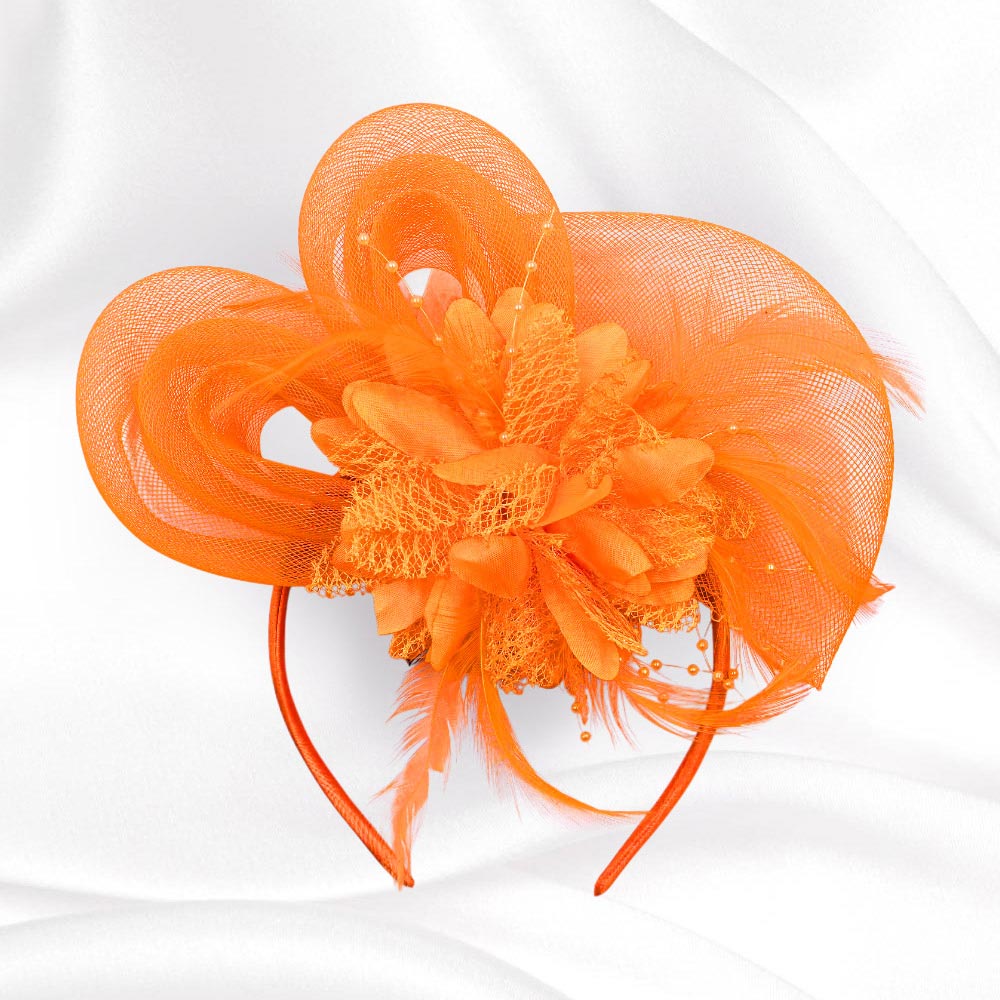 Feather Mesh Flower Fascinator / Headband
