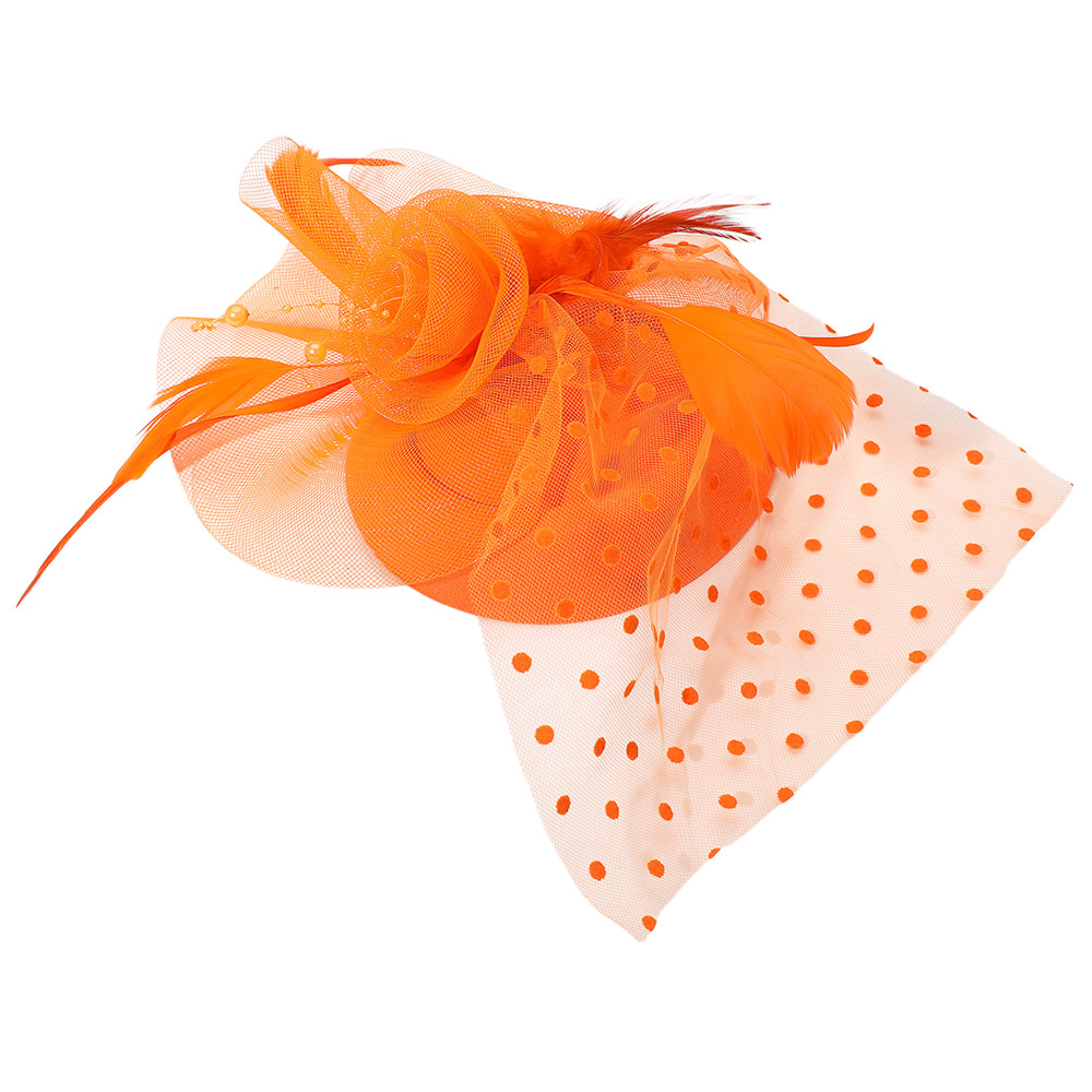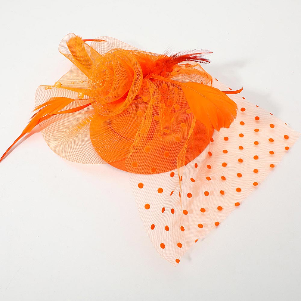 Details • Size : 9" X 12" • Dual : Hair Pinch Clip / Headband • Turn heads with this elegant polka dot fascinator featuring a delicate mesh veil, rosette accent, and graceful feather details. Perfect for weddings, cocktail parties, and special events, this chic headpiece adds a vintage-inspired touch of glamour to any formal outfit or occasion look.