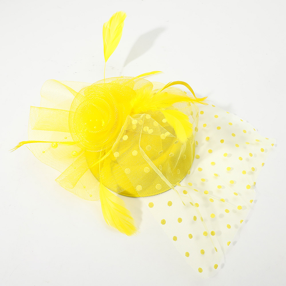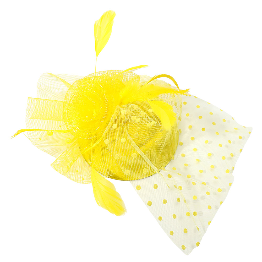 Details • Size : 9" X 12" • Dual : Hair Pinch Clip / Headband • Turn heads with this elegant polka dot fascinator featuring a delicate mesh veil, rosette accent, and graceful feather details. Perfect for weddings, cocktail parties, and special events, this chic headpiece adds a vintage-inspired touch of glamour to any formal outfit or occasion look.