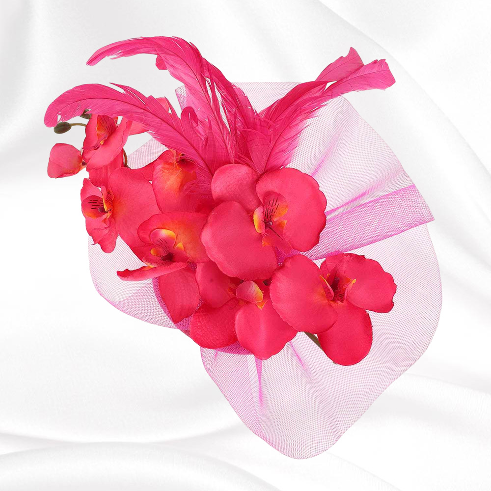 Feather Accent Mesh Floral Fascinator Hair Clip Headband