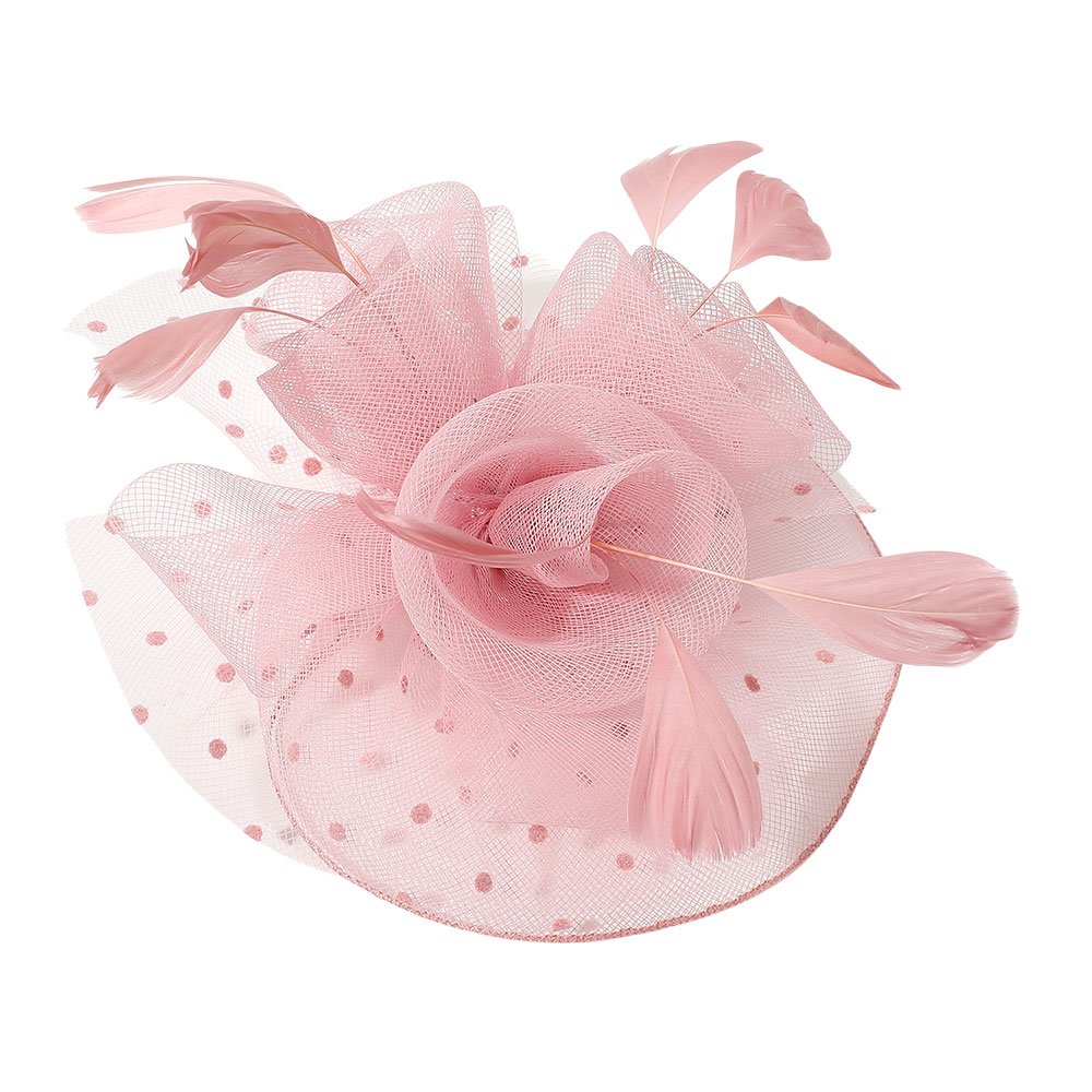 • Chic fascinator hat featuring a layered mesh design, feather accents, and dotted veil for a sophisticated finish. Ideal for weddings, cocktail parties, horse races, and special occasions, adding elegance to any outfit.