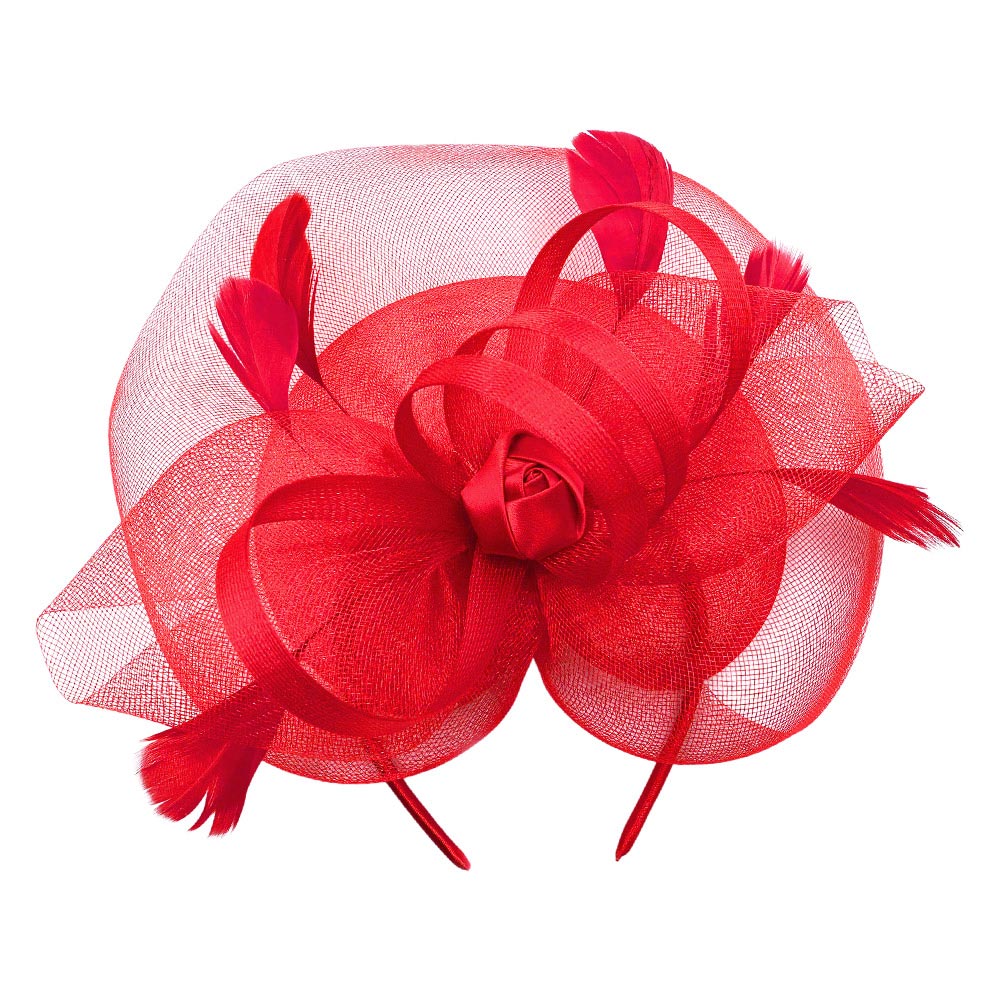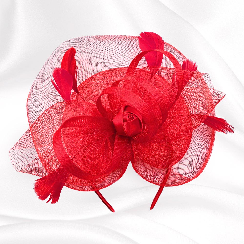 Dotted Mesh Flower Feather Mesh Fascinator / Headband