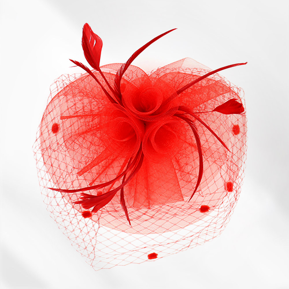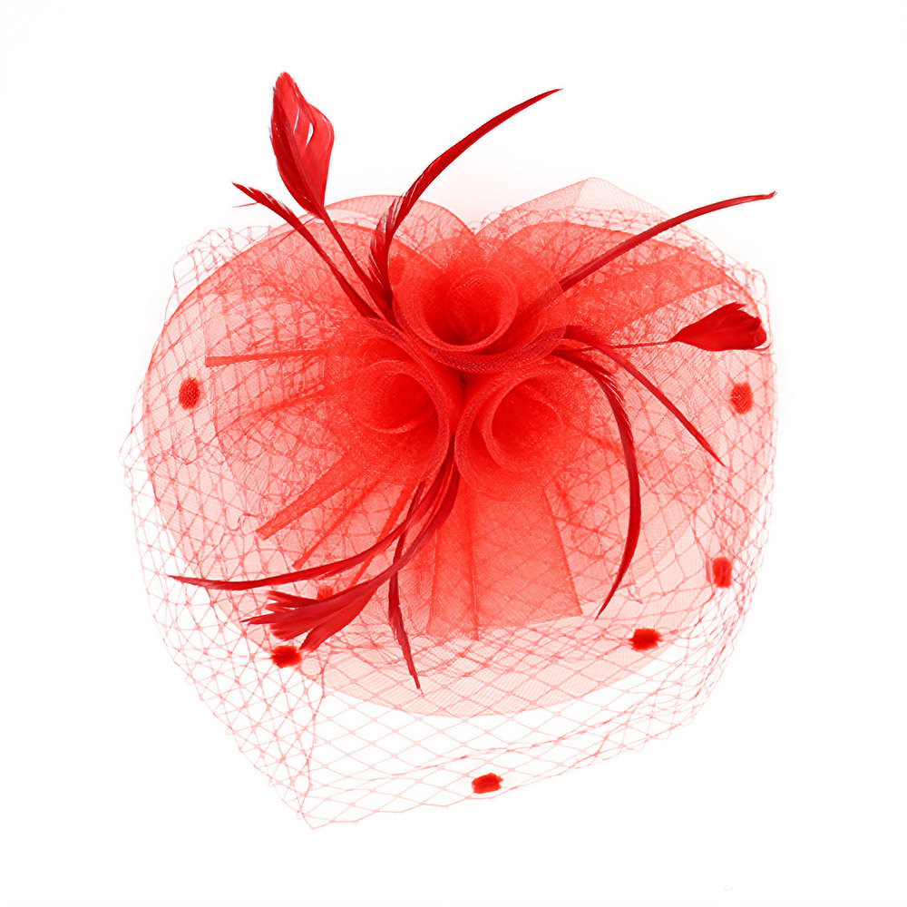 Feather Crystal Detail Bow Mesh Metallic Satin Dressy Hat