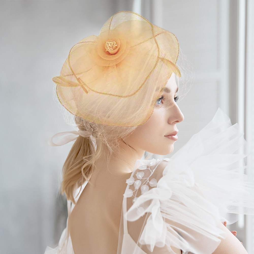 Flower Bead Feather Netting Pearl Accented Fascinator / Headband