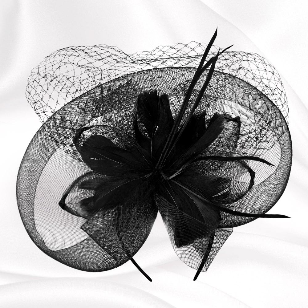 Rhinestone Paved Band Pointed Feather Bow Fascinator / Headband