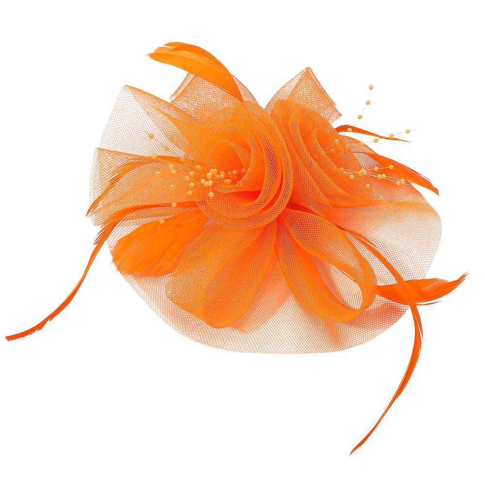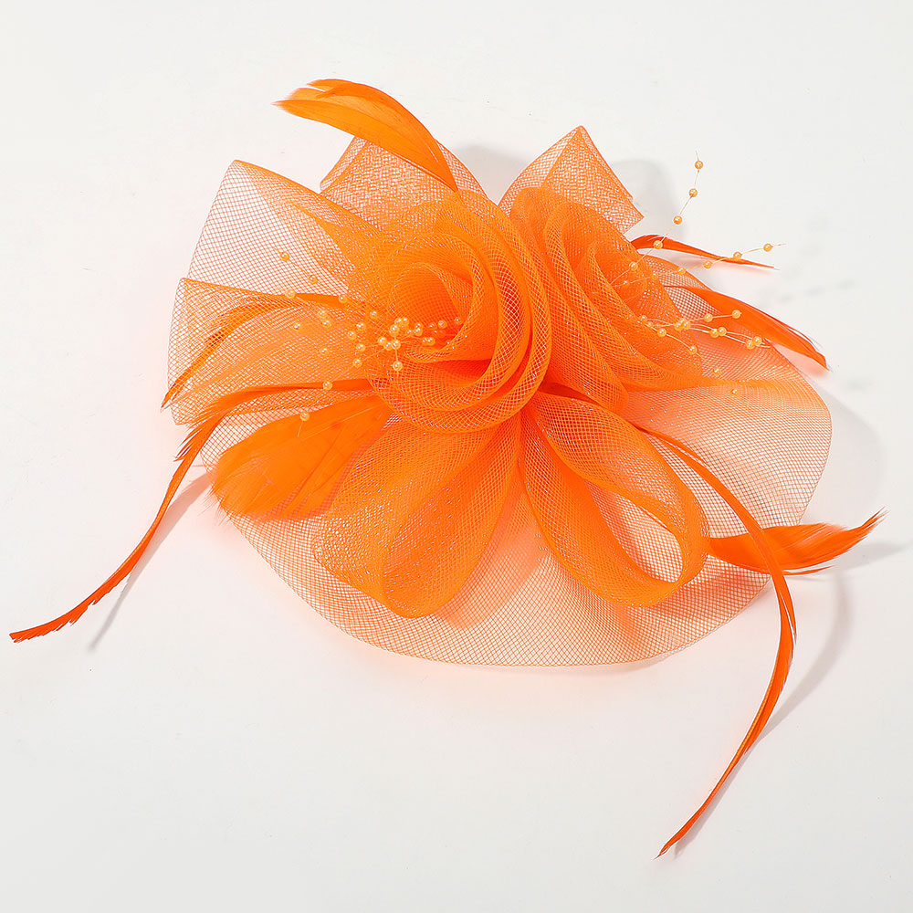 Flower Feather Pearl Mesh Bow Fascinator / Headband